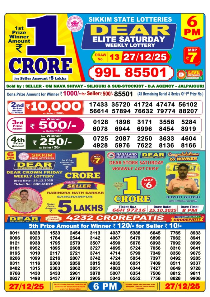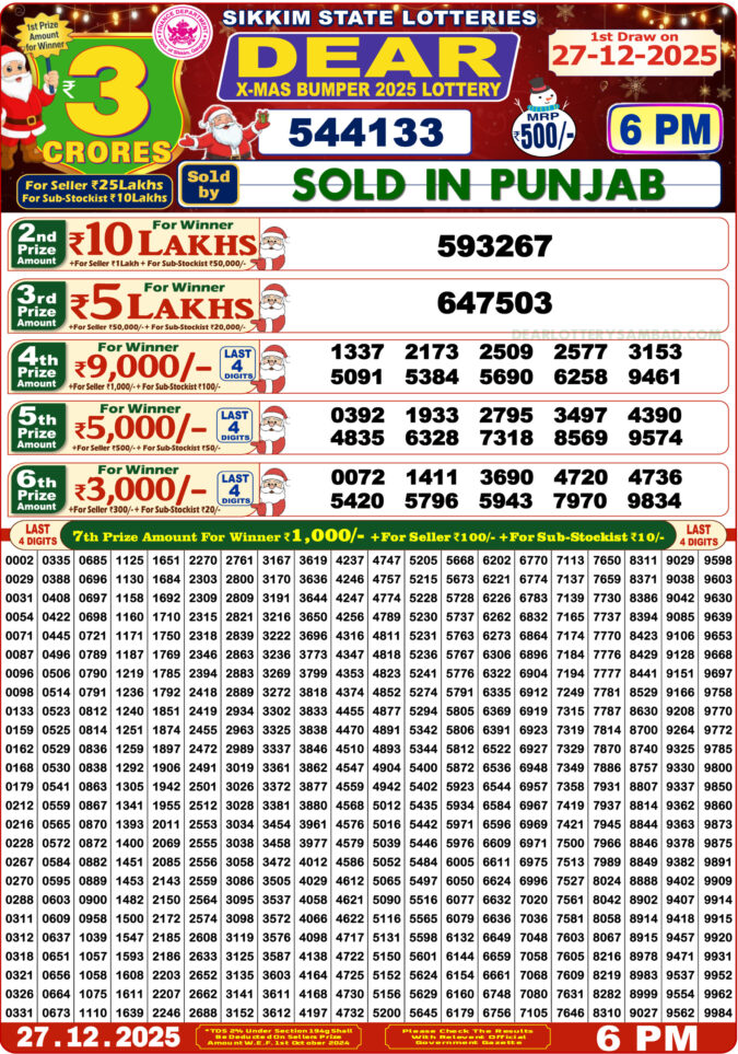 Dear X-Mas Bumper 2025 Lottery Result 27.12.2025 The Dear X-Mas Bumper 2025 Lottery Result is one of…
