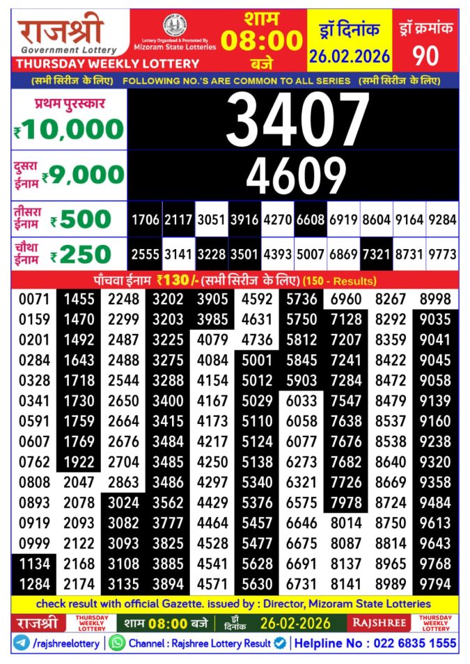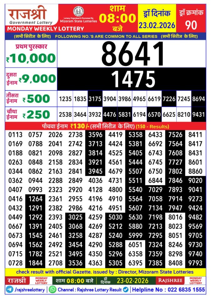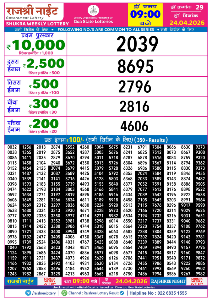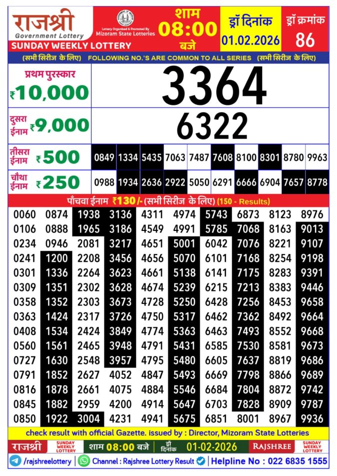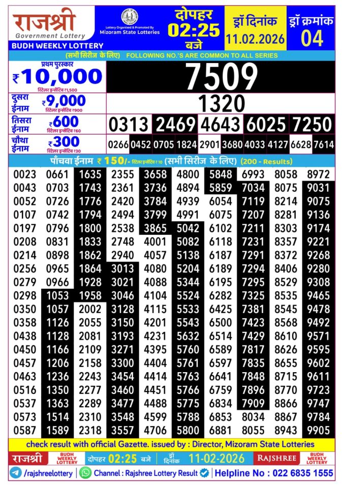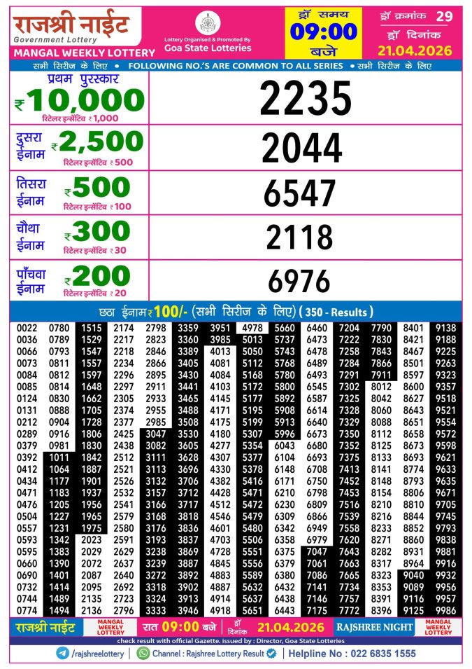 Daily Dear Lottery 2.25PM Rajshree Lottery