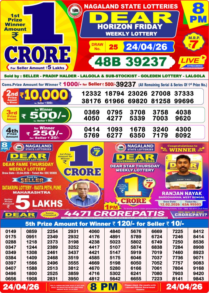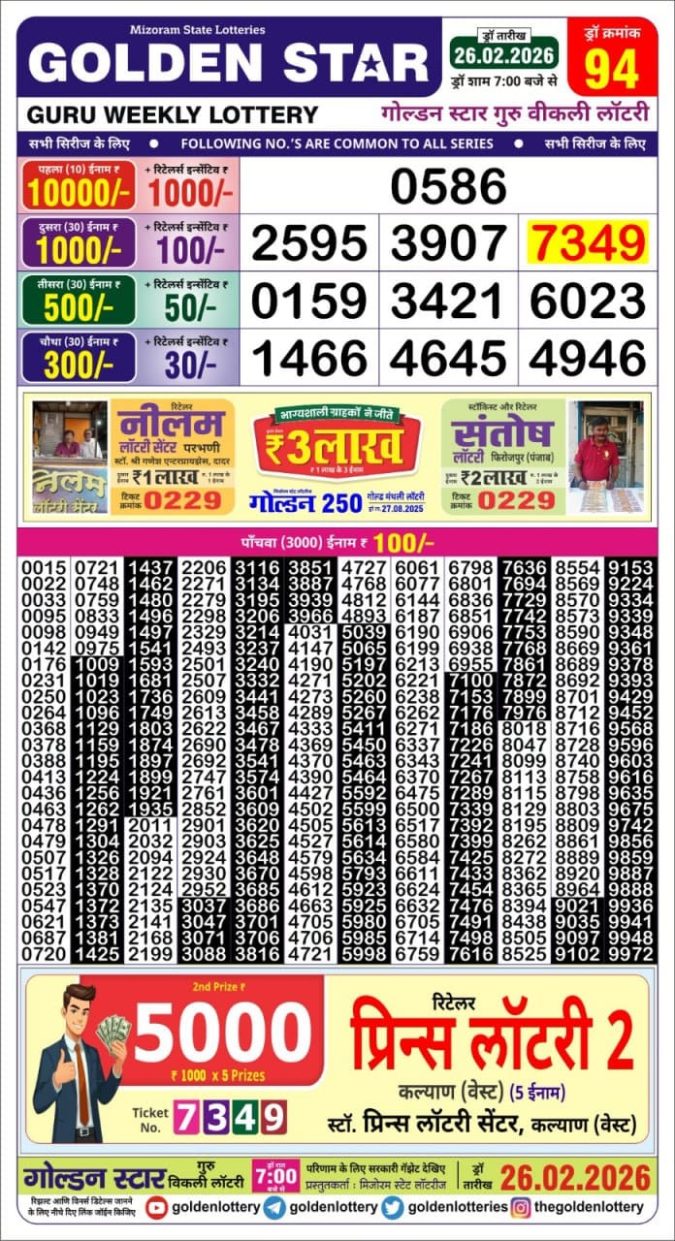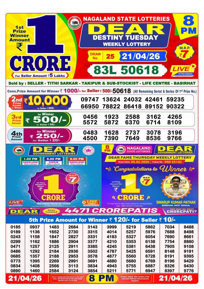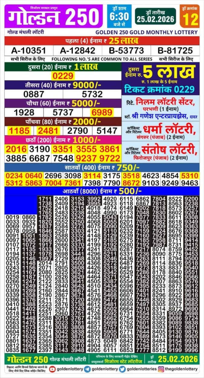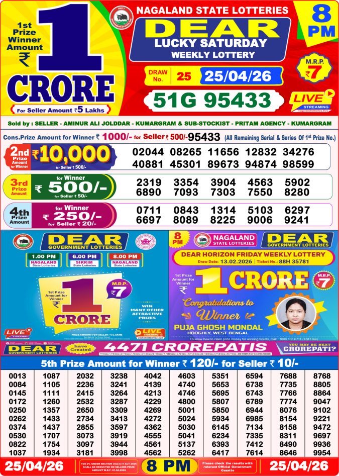 Daily Dear Lottery 2.25PM Rajshree Lottery
