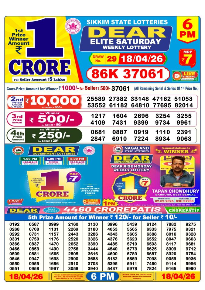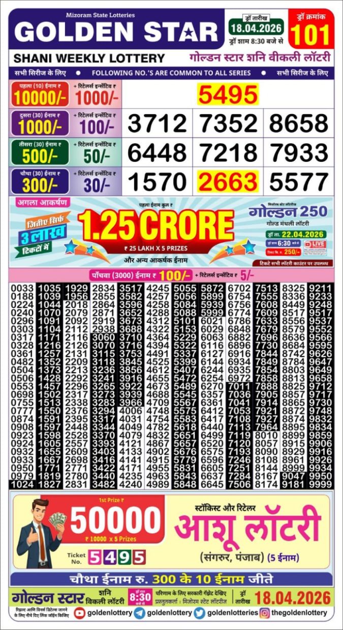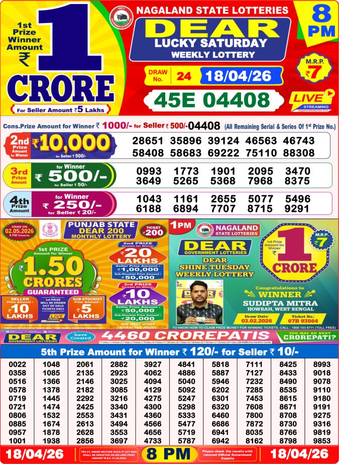 Rajshree 200 Monthly Lottery Today Result 16.04.2026 Latest Update (Post Draw): The Rajshree 200 Monthly Lottery draw…