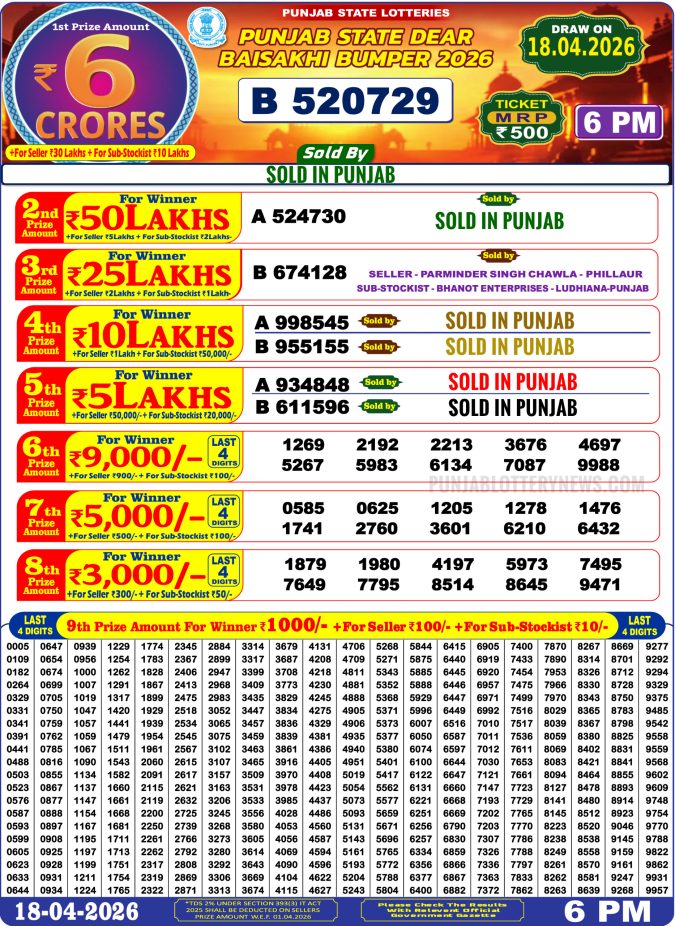 Punjab State Lottery Baisakhi Bumper 2026 Result