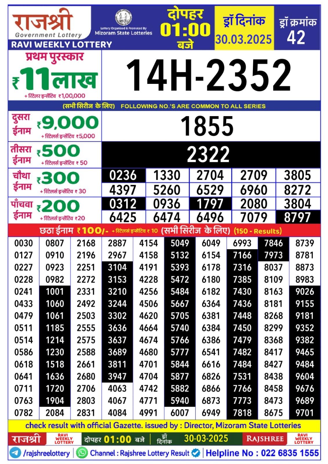Rajshree Ravi Weekly Lottery 1pm Result 16.11.2025