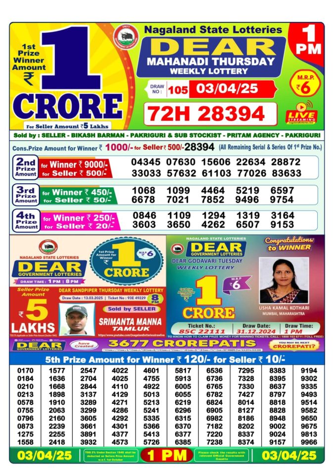 Category: 1 PM Lottery Result