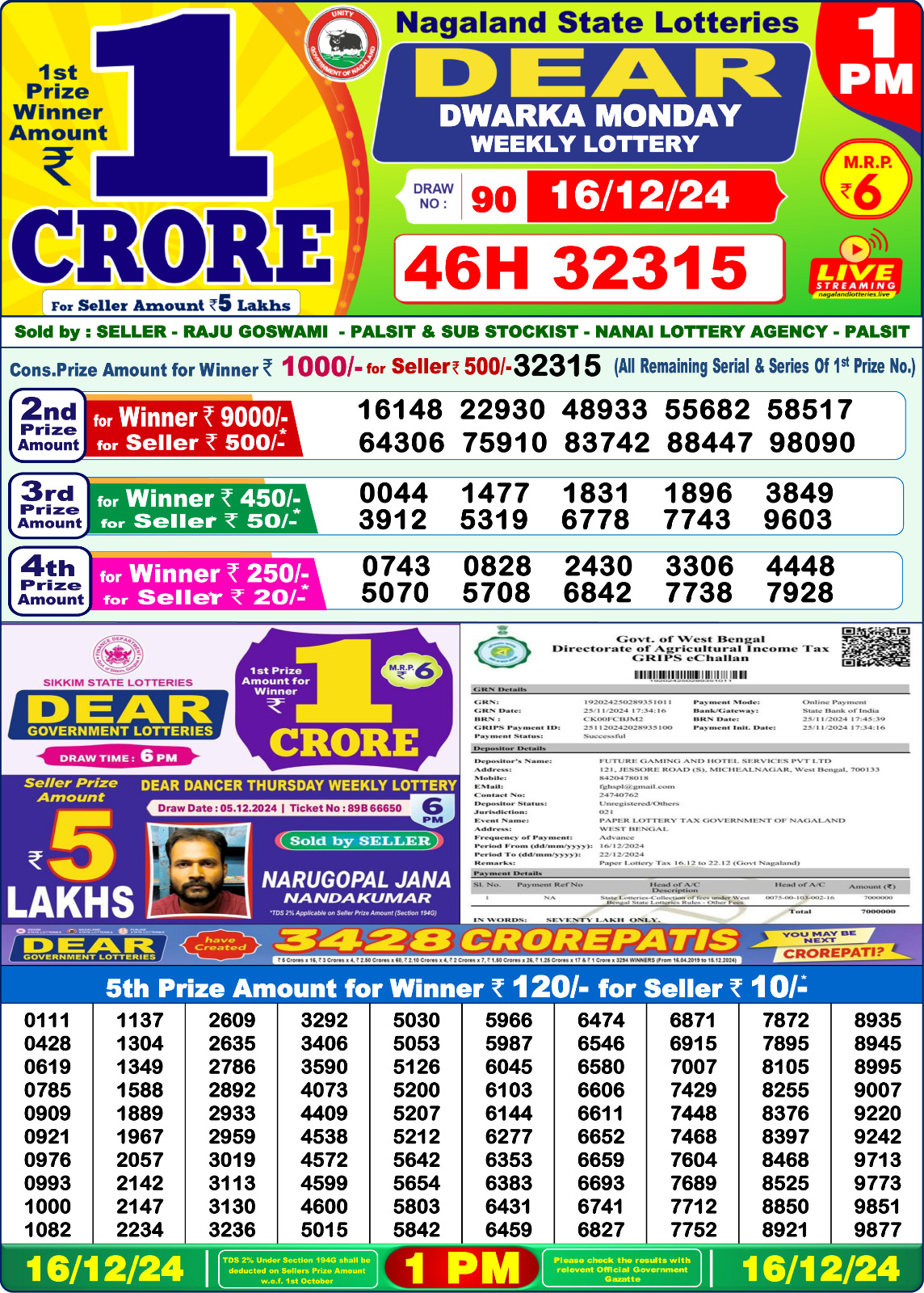 Dear narmada saturday Weekly 1pm result 26.07.2025