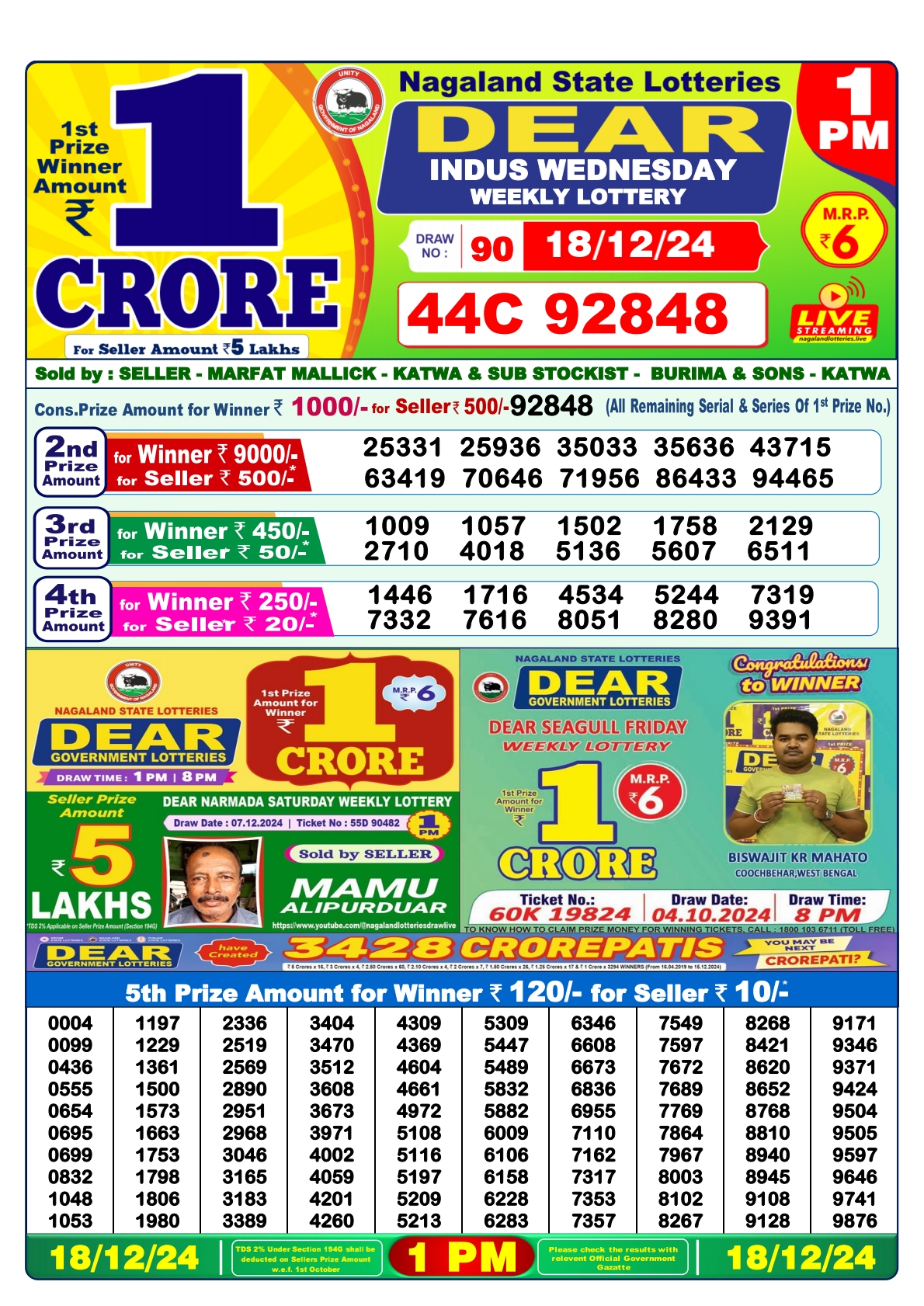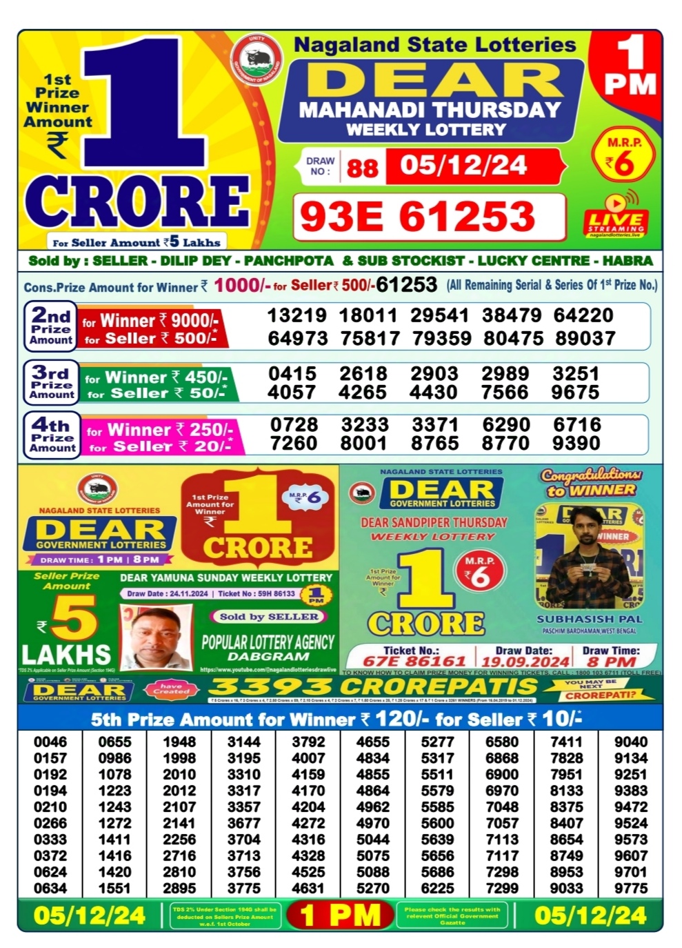 Dear mahanadi Thursday Weekly 1pm result 24.07.2025