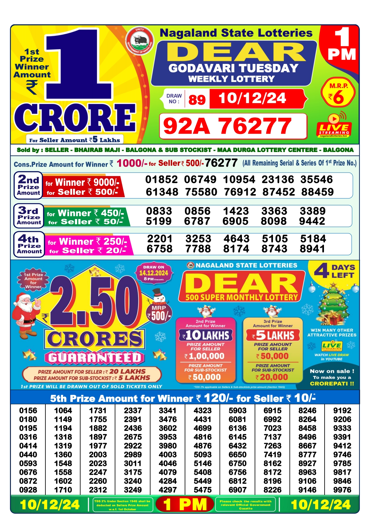 Dear Godavari Tuesday Weekly 1pm Result 05.08.2025