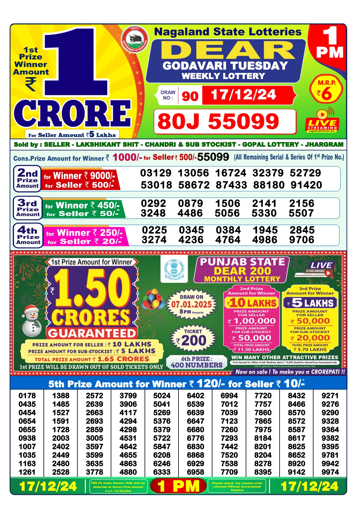 Dear godavari tuesday Weekly 1pm result 22.07.2025