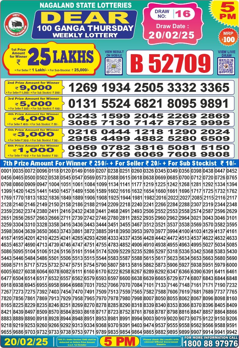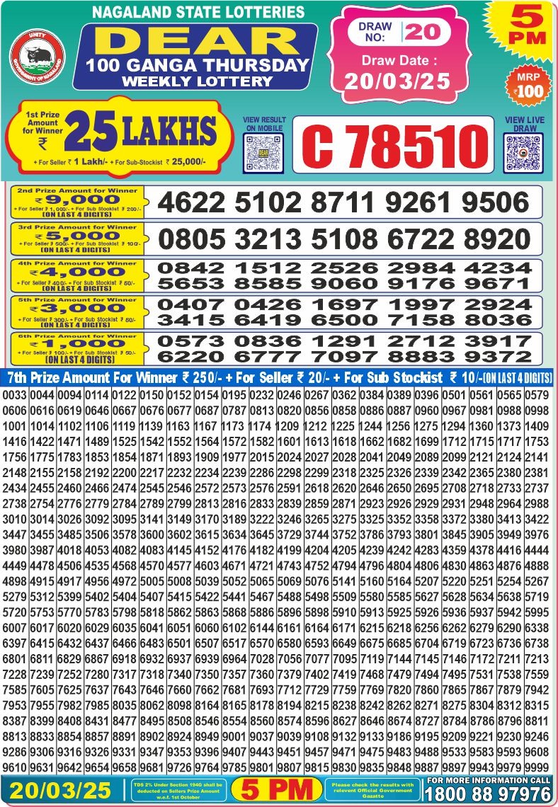 Dear 100 Ganga Thursday Lottery 5pm Result  24.07.2025