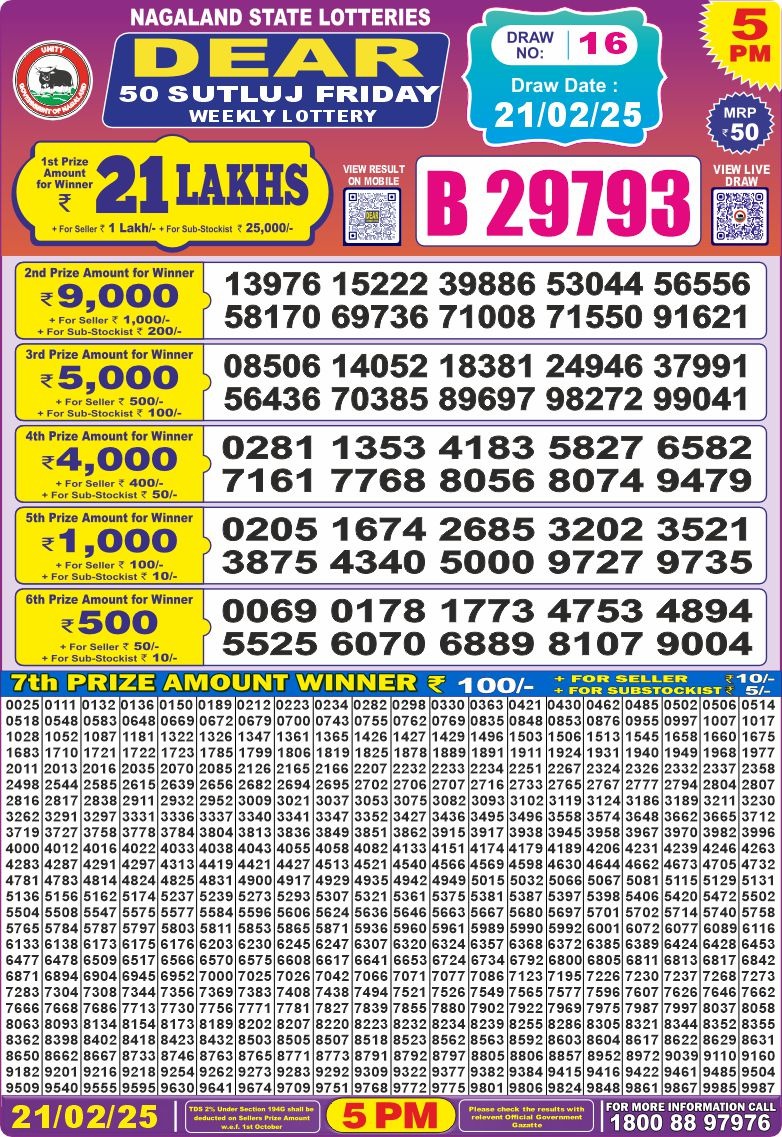 Dear 50 satluj Friday Lottery 5pm Result 25.07.2025