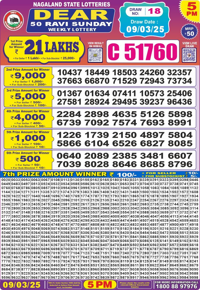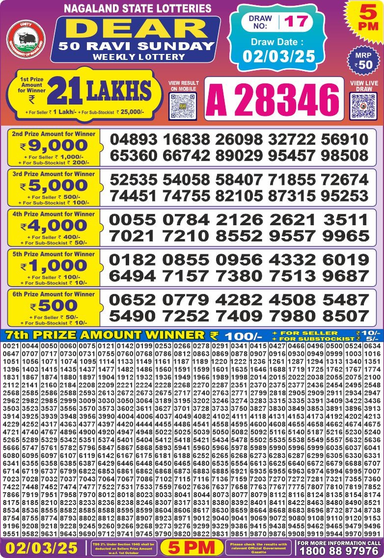 Dear 50 ravi saturday Lottery 5pm Result  27.07.2025