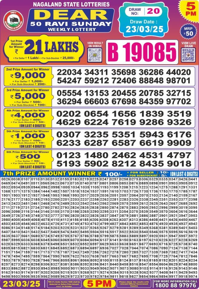 Dear 50 ravi saturday Lottery 5pm Result  25.05.25