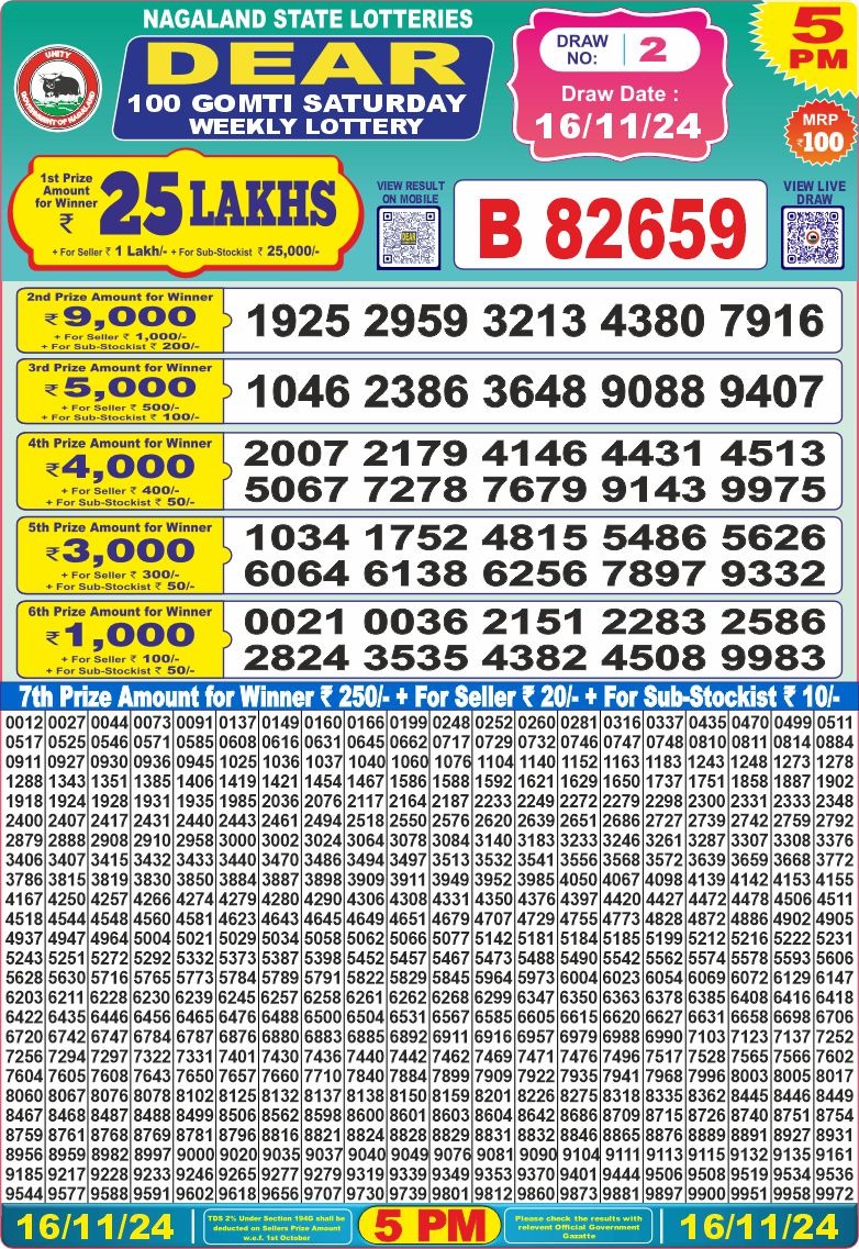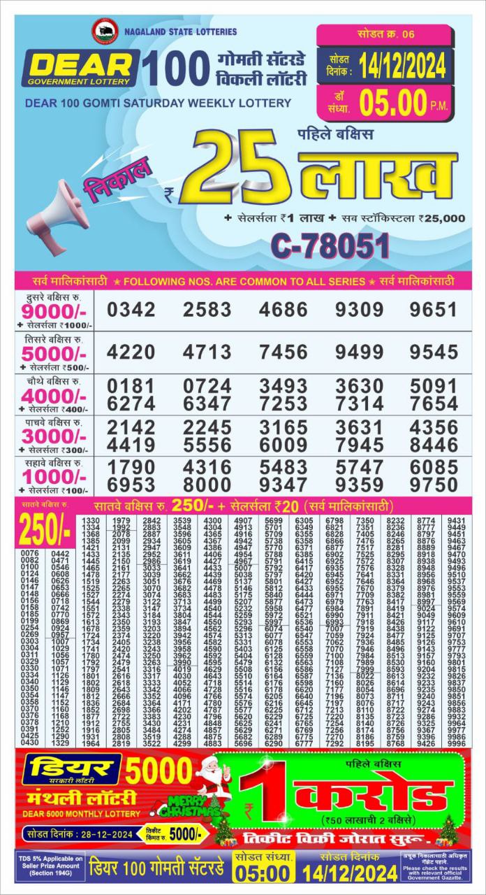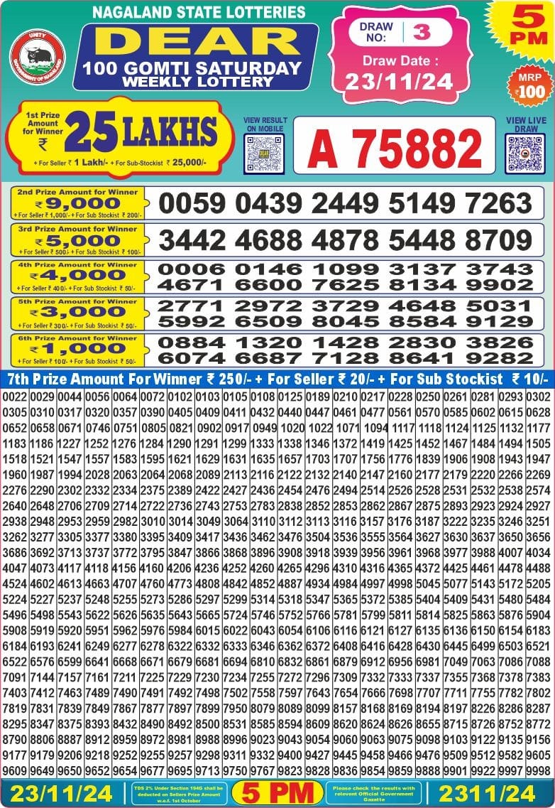Dear 100 Gomti saturday Lottery 5pm Result  1.3.25