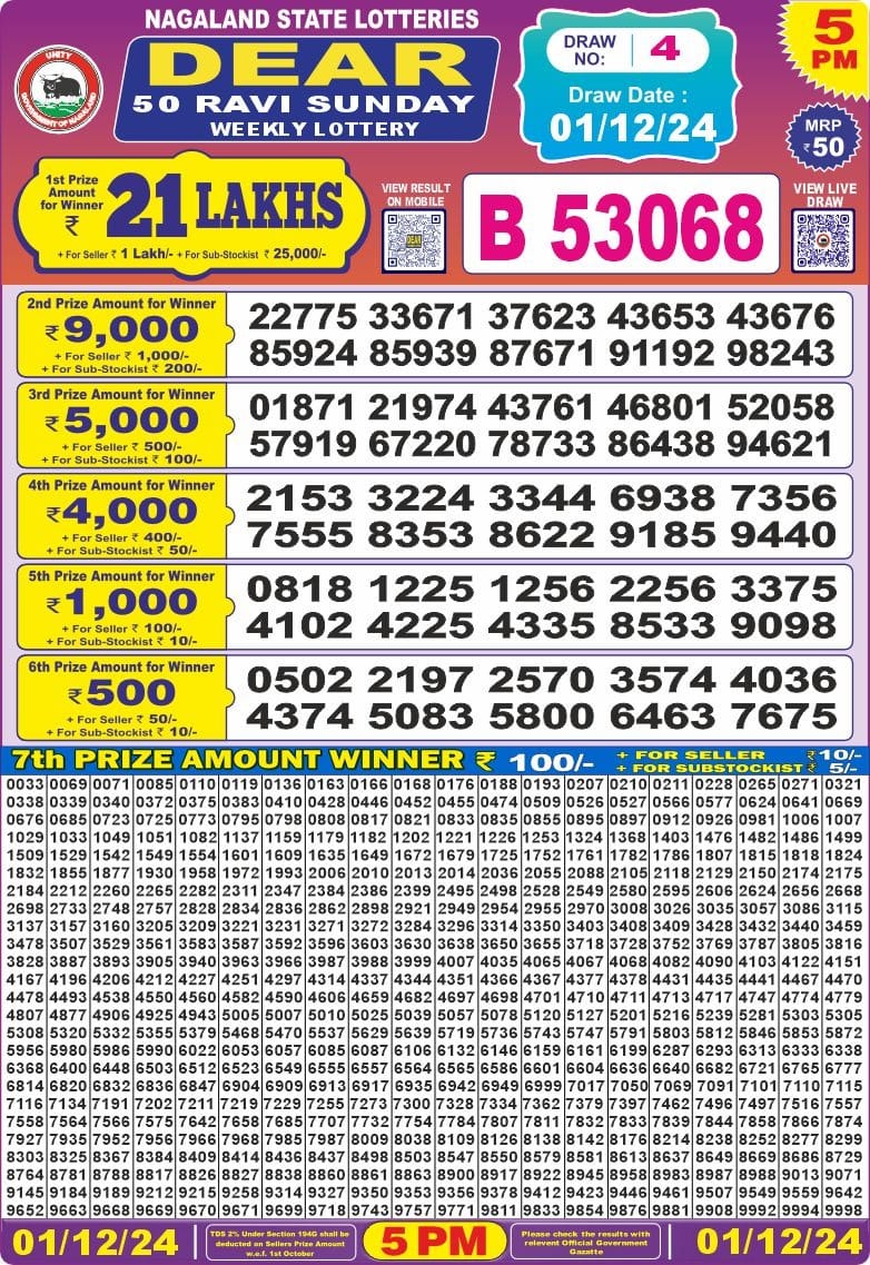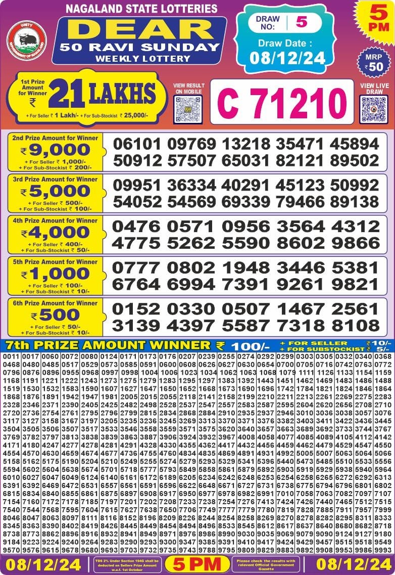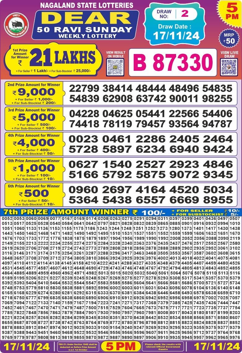 Dear 50 ravi saturday Lottery 5pm Result  23.2.25