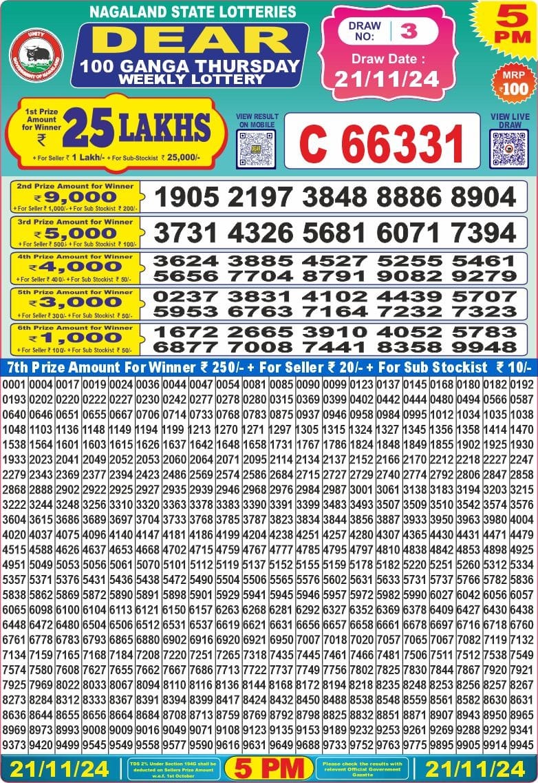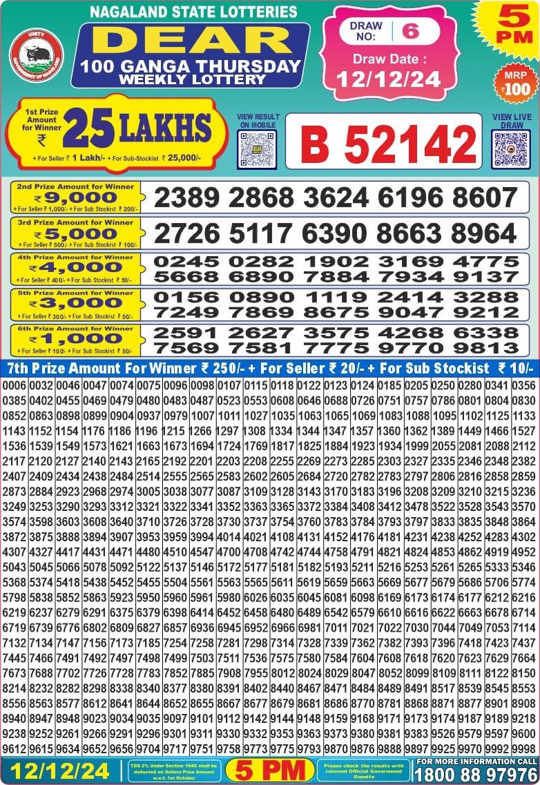 Dear 100 Ganga Thursday Lottery 5pm Result  6.3.25