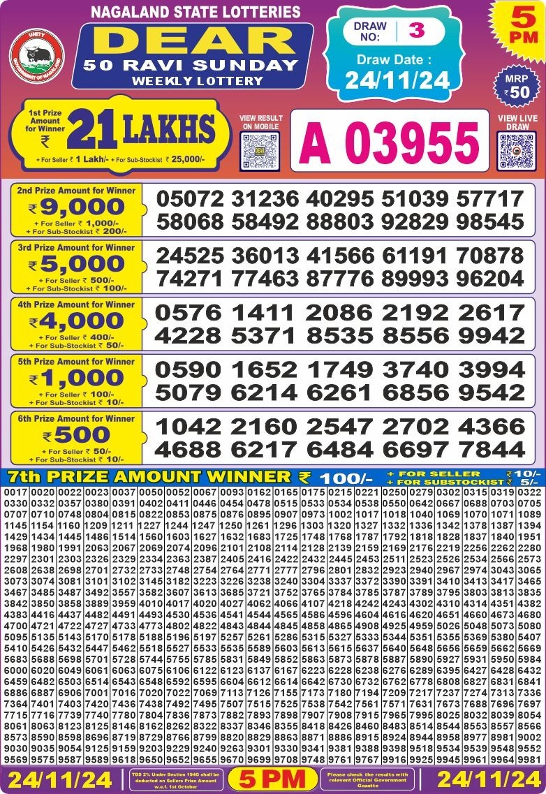 Dear 50 ravi saturday Lottery 5pm Result  9.3.25