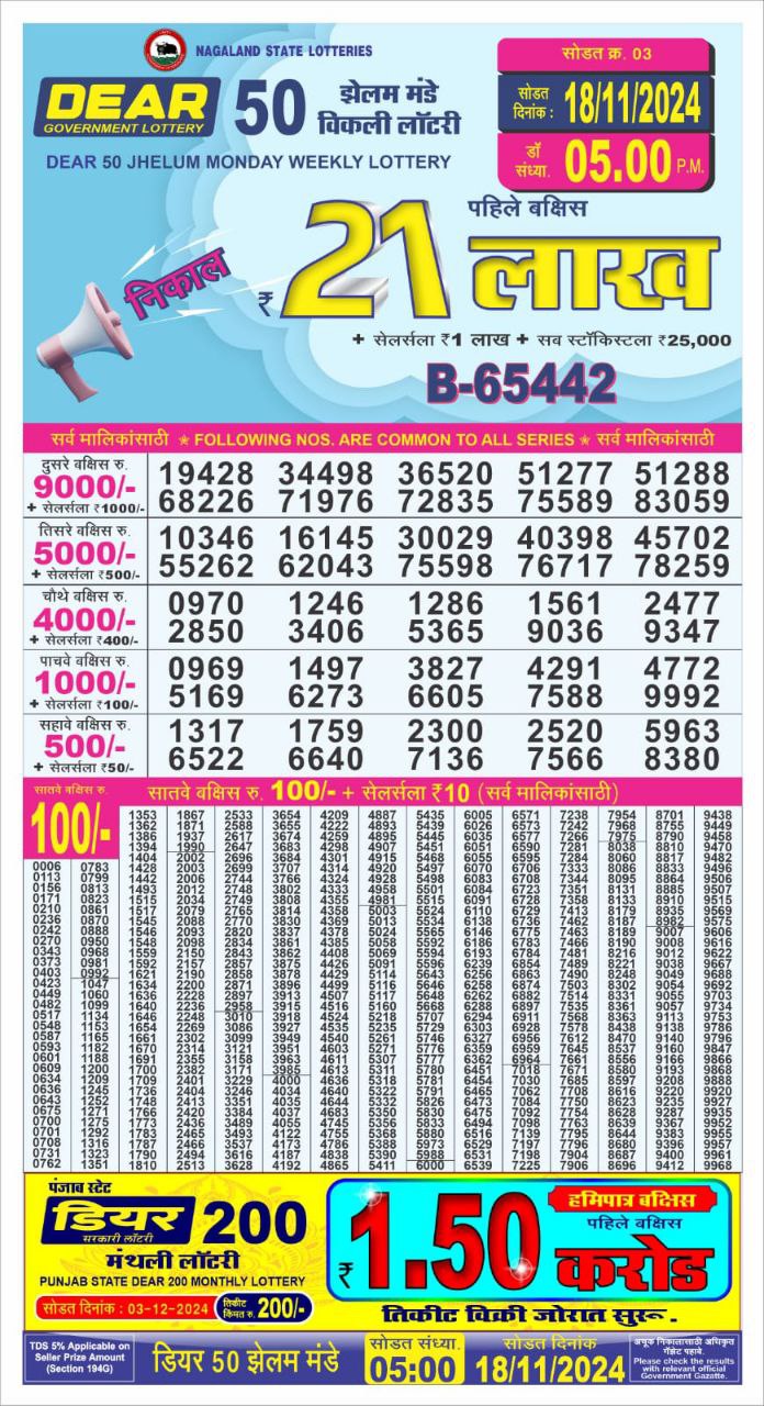 Dear 50 jhelum monday Lottery 5pm Result  17.3.25