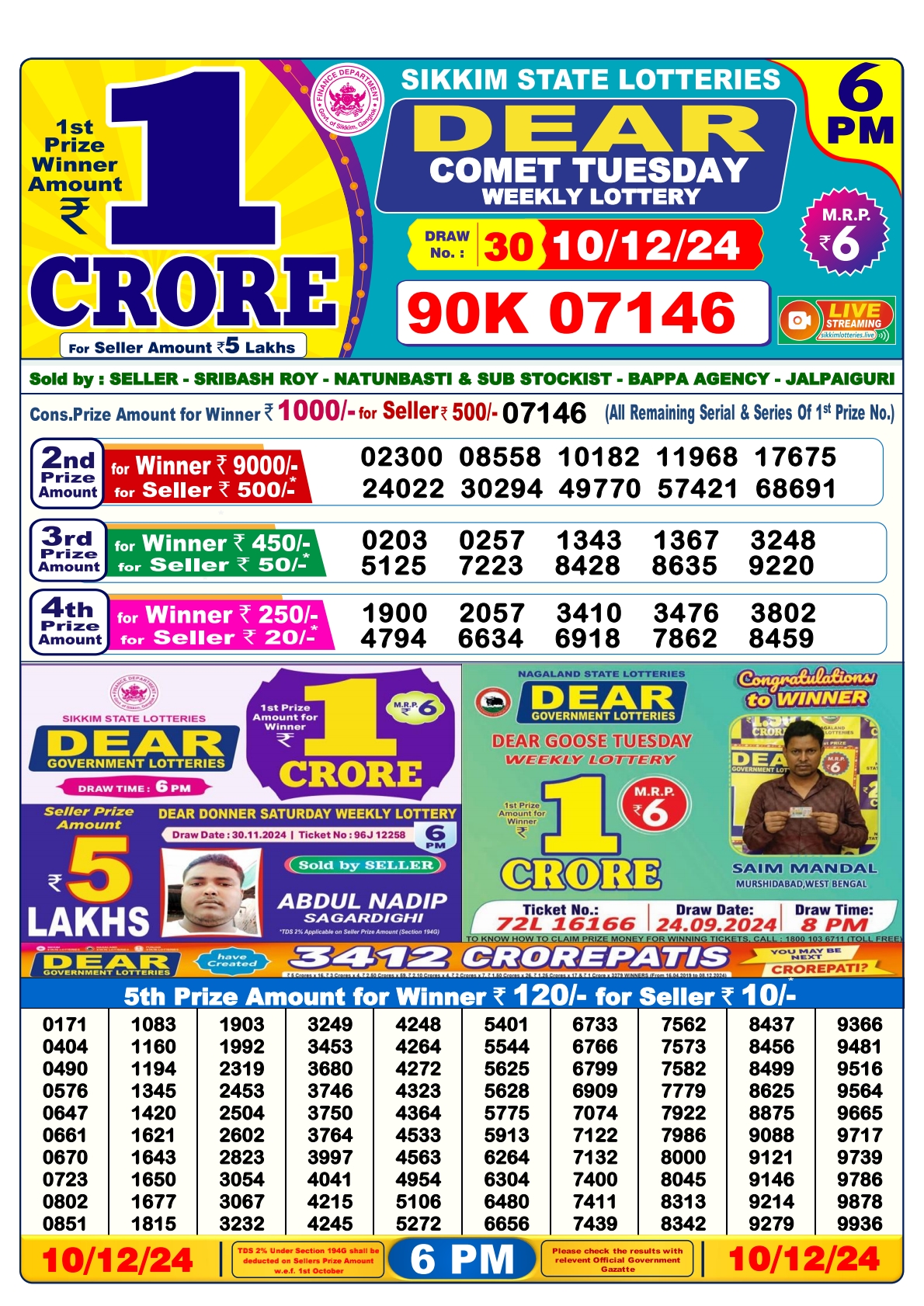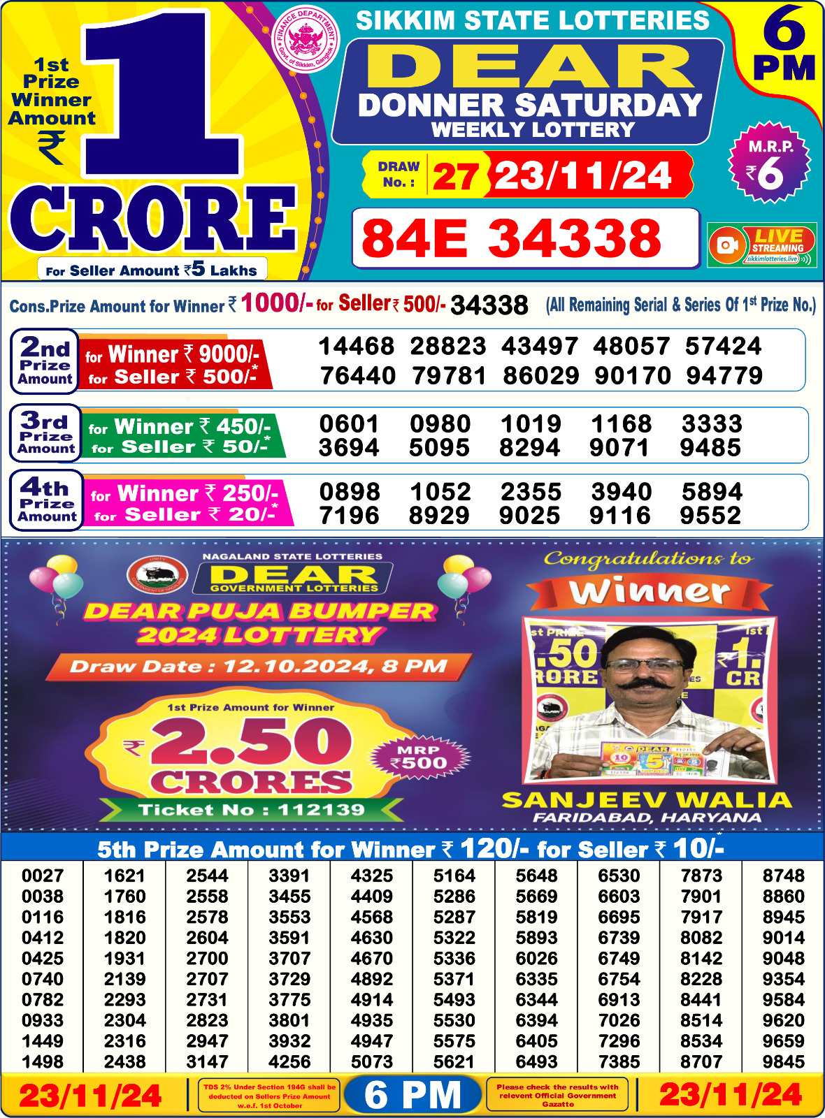 Punjab state dear 10 6pm lottery result 30.06.2025