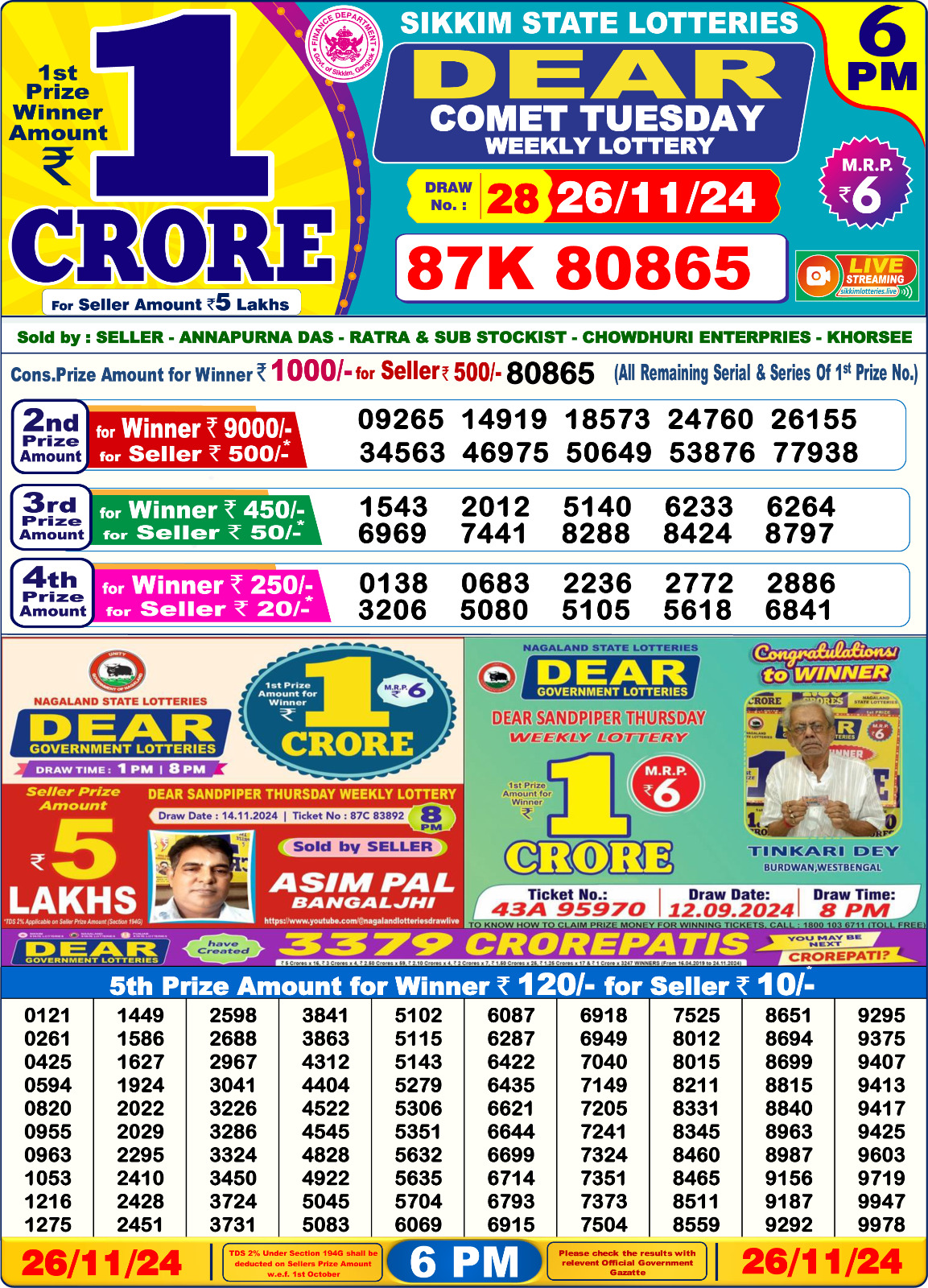 Dear comet tuesday weekly 6PM Result 01.07.2025