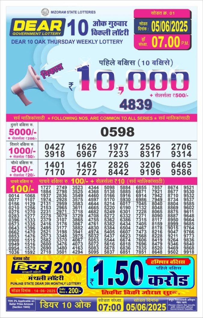 • Punjab State Dear 50 6pm Lottery Result 14.12.2025