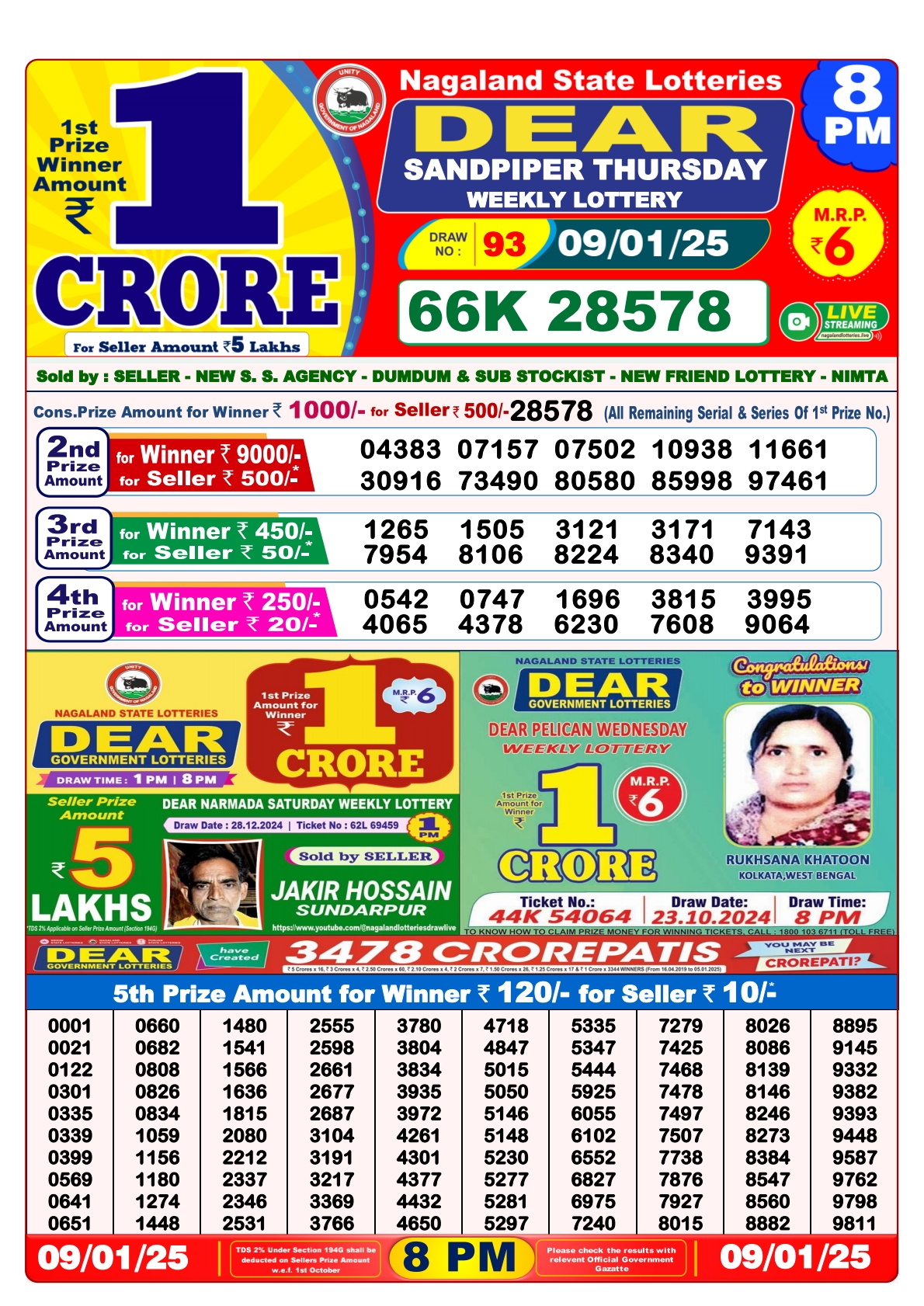 Dear Sandpiper Thursday Weekly Lottery 8PM Result 2.1.25