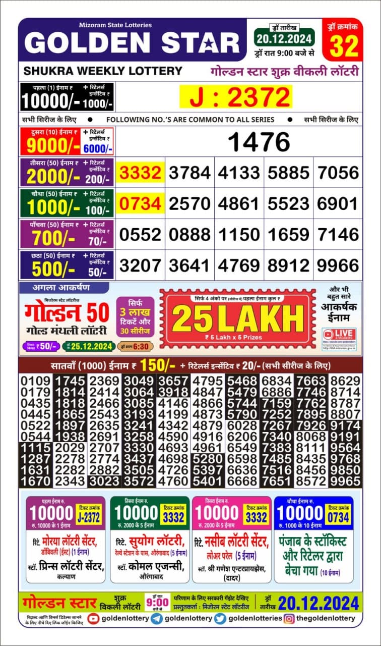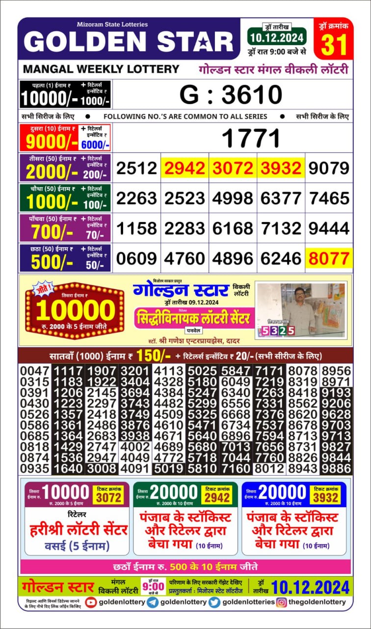 Golden Star Weekly Lottery Result 9pm 10.10.2025