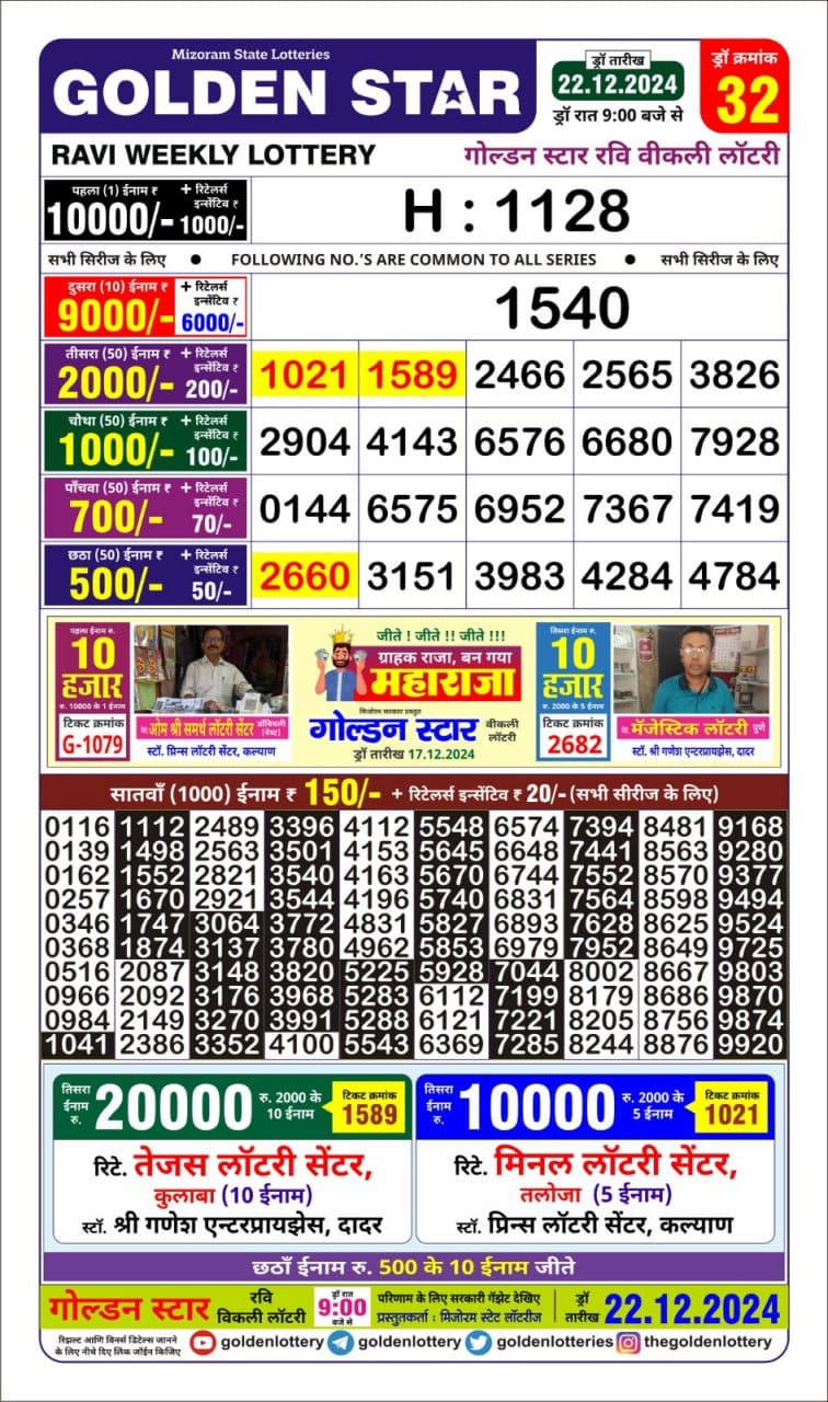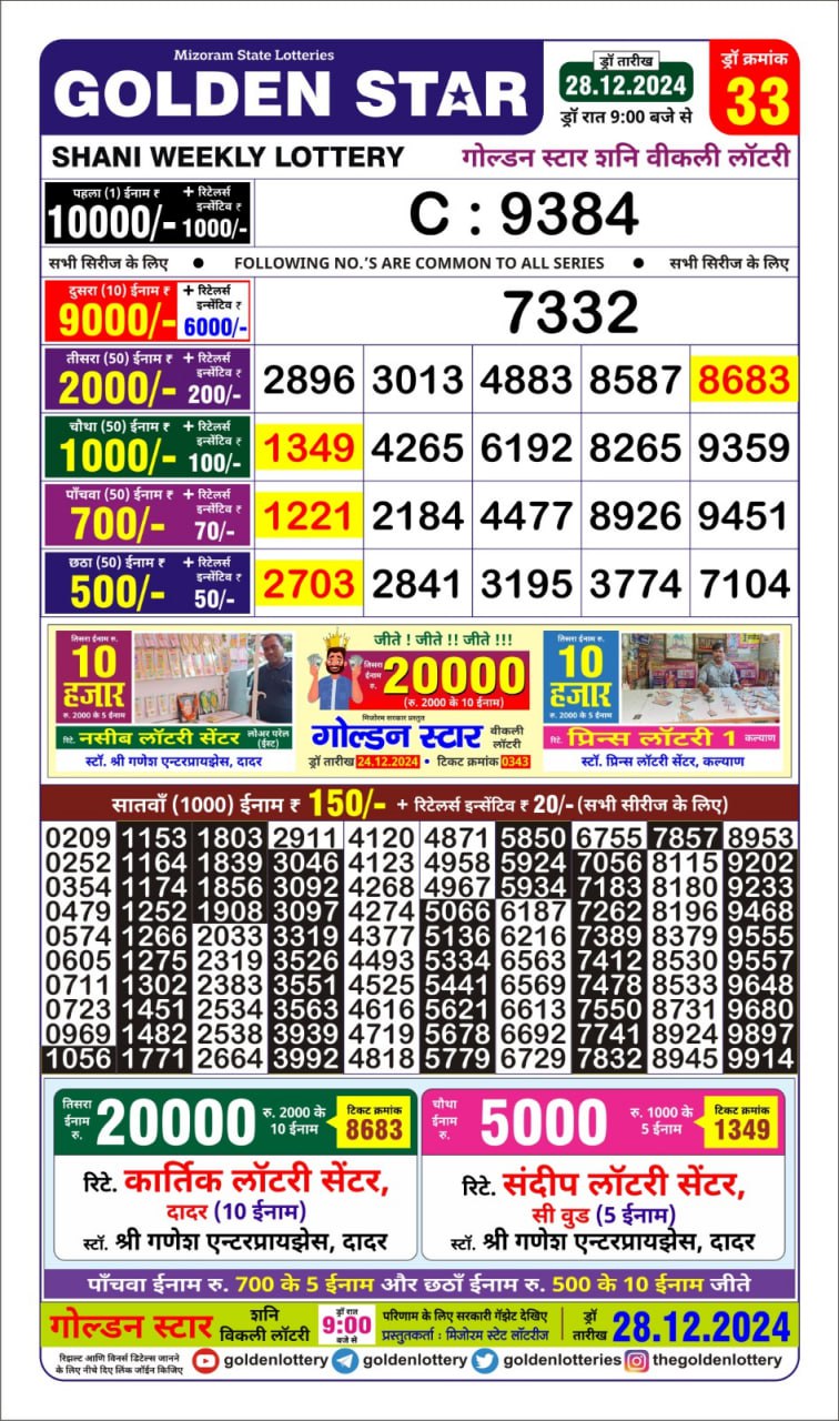 Golden Star Weekly Lottery Result 9pm 28.09.2025