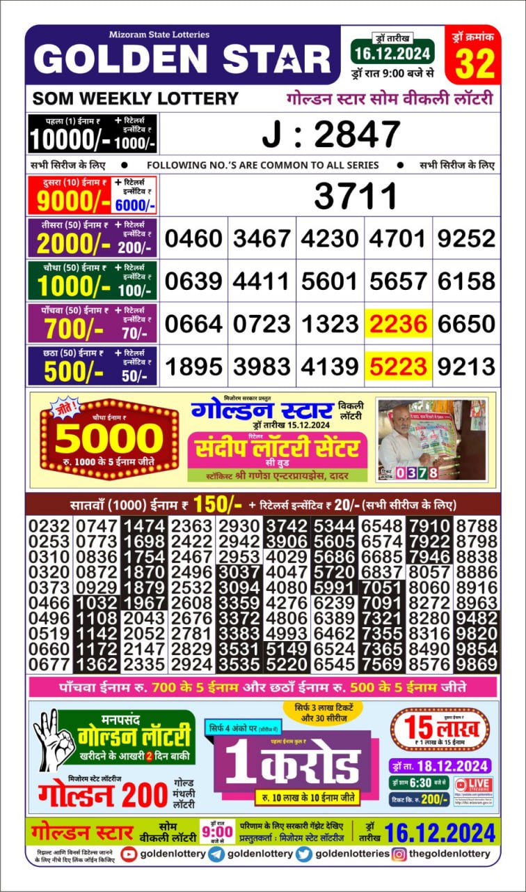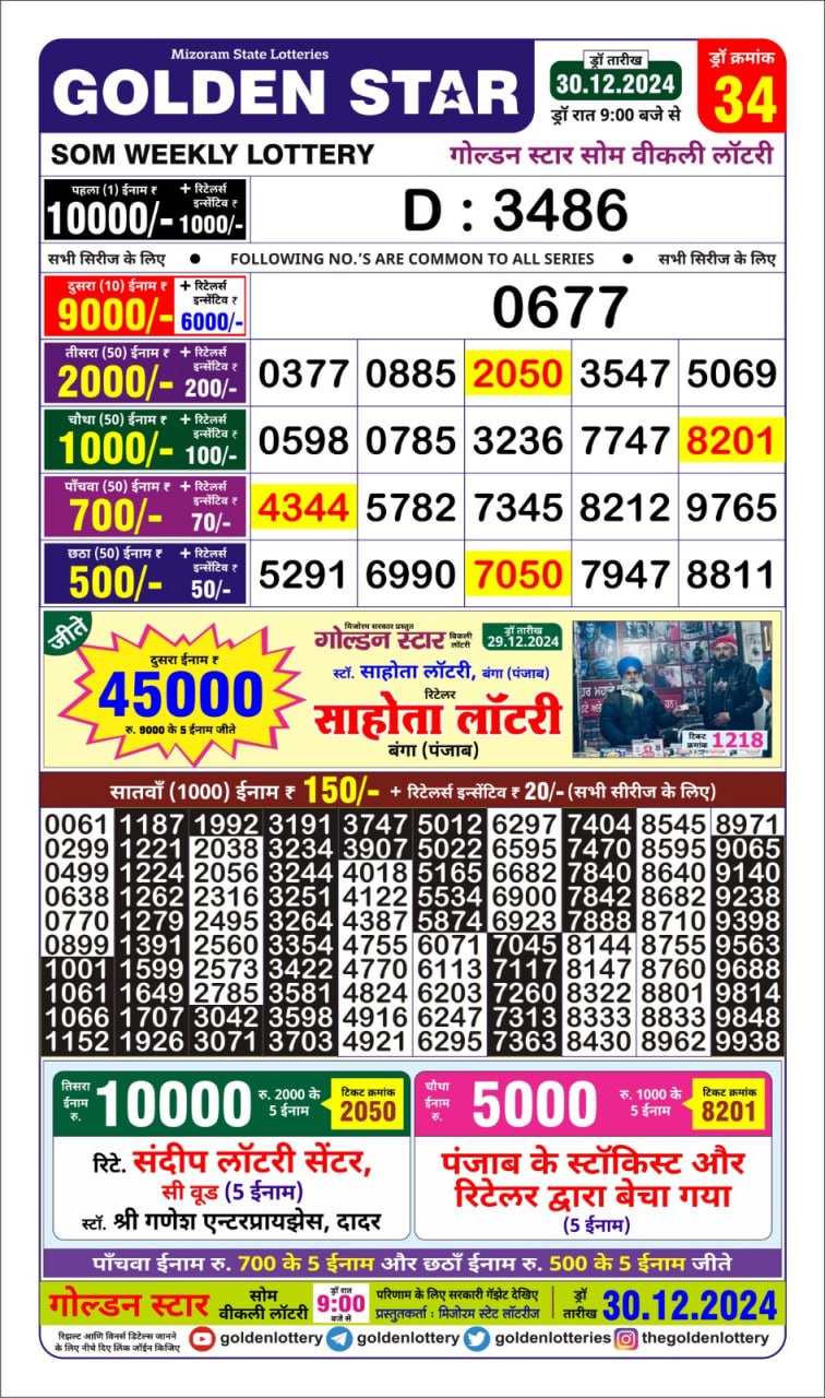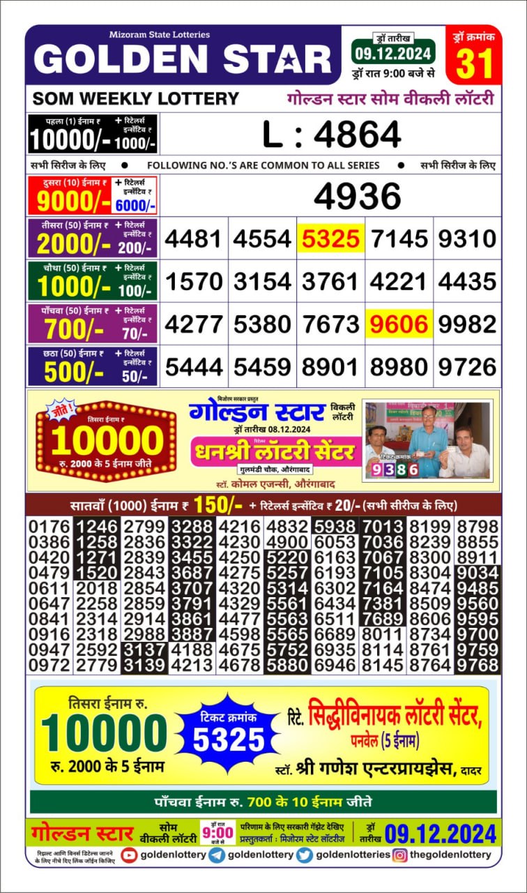 Golden Star Weekly Lottery Result 9pm 06.10.2025