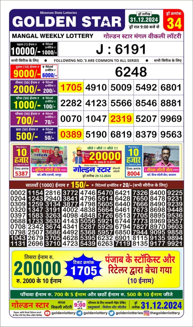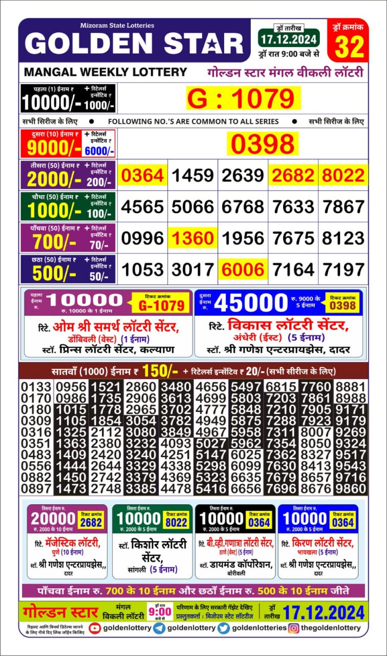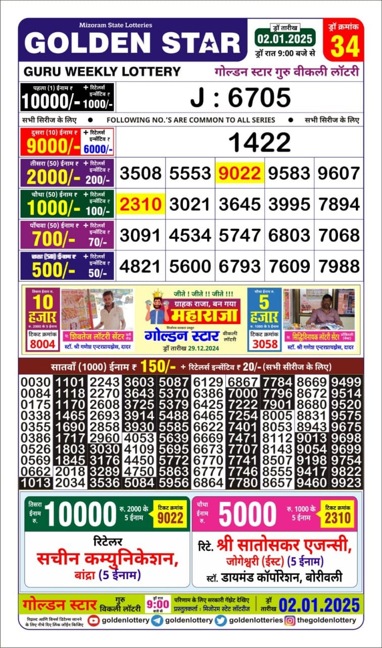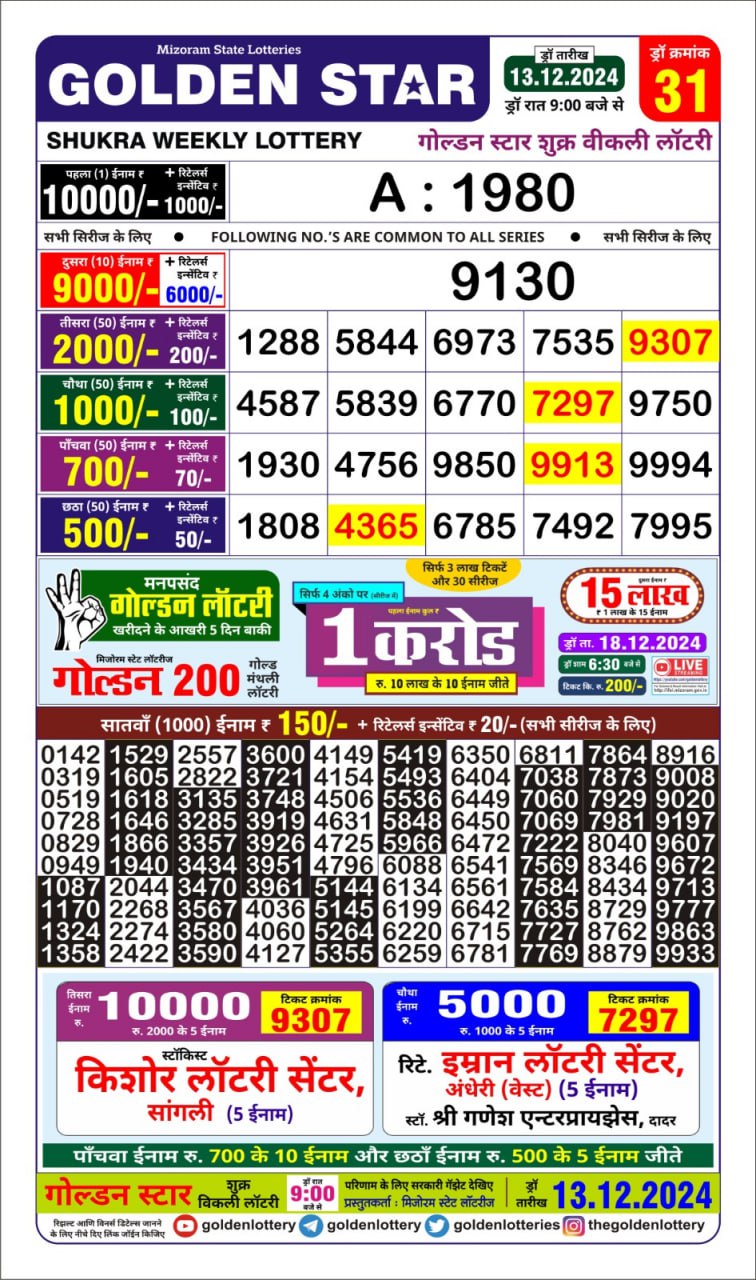 Golden Star Weekly Lottery Result 9pm 06.10.2025