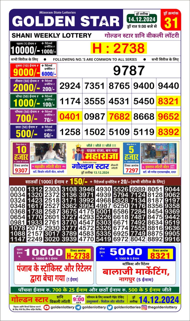 Golden Star Weekly Lottery Result 9pm 14.09.2025