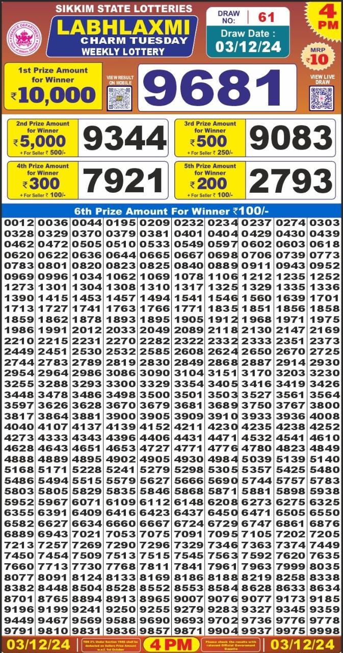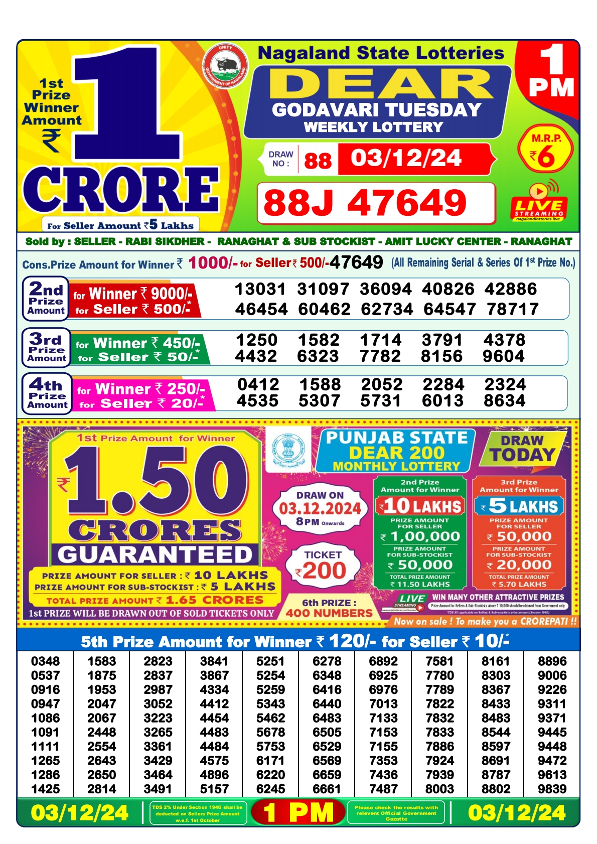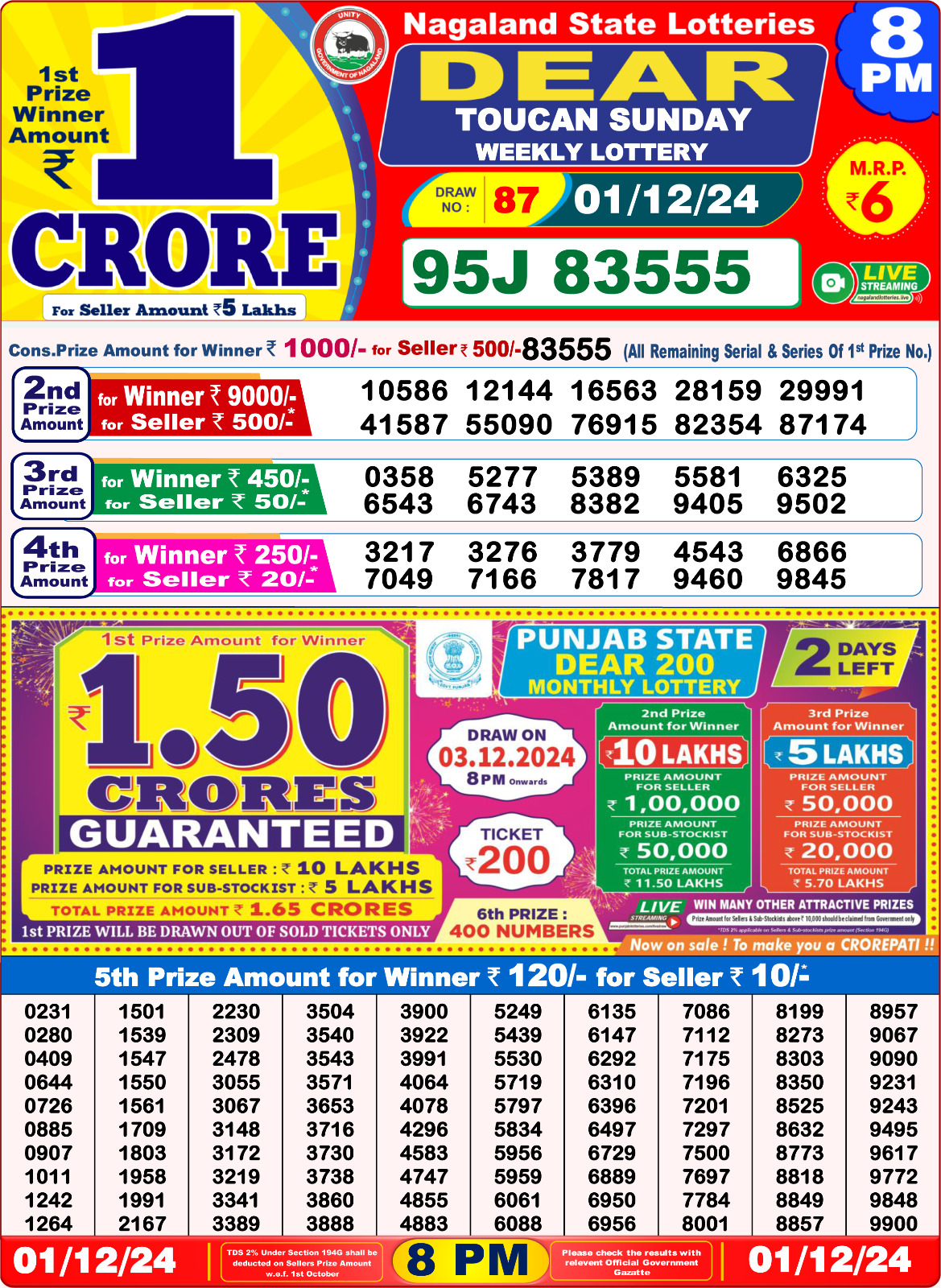 Punjab state dear 10 6pm lottery result 01.07.2025