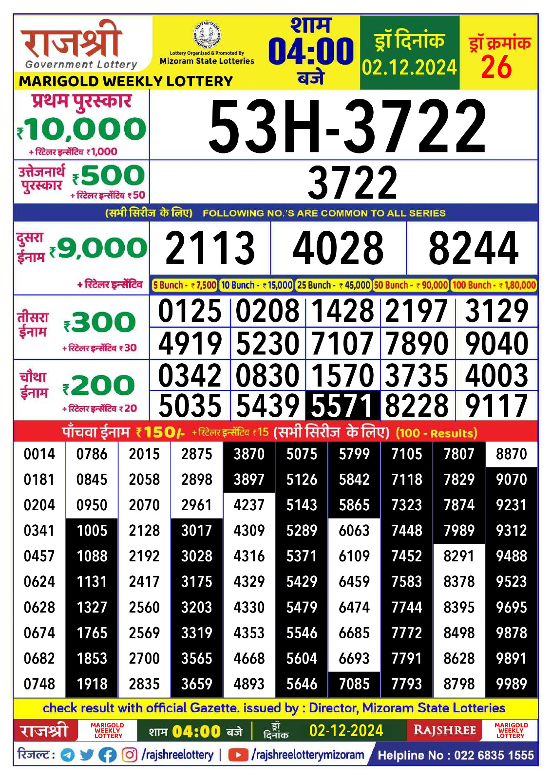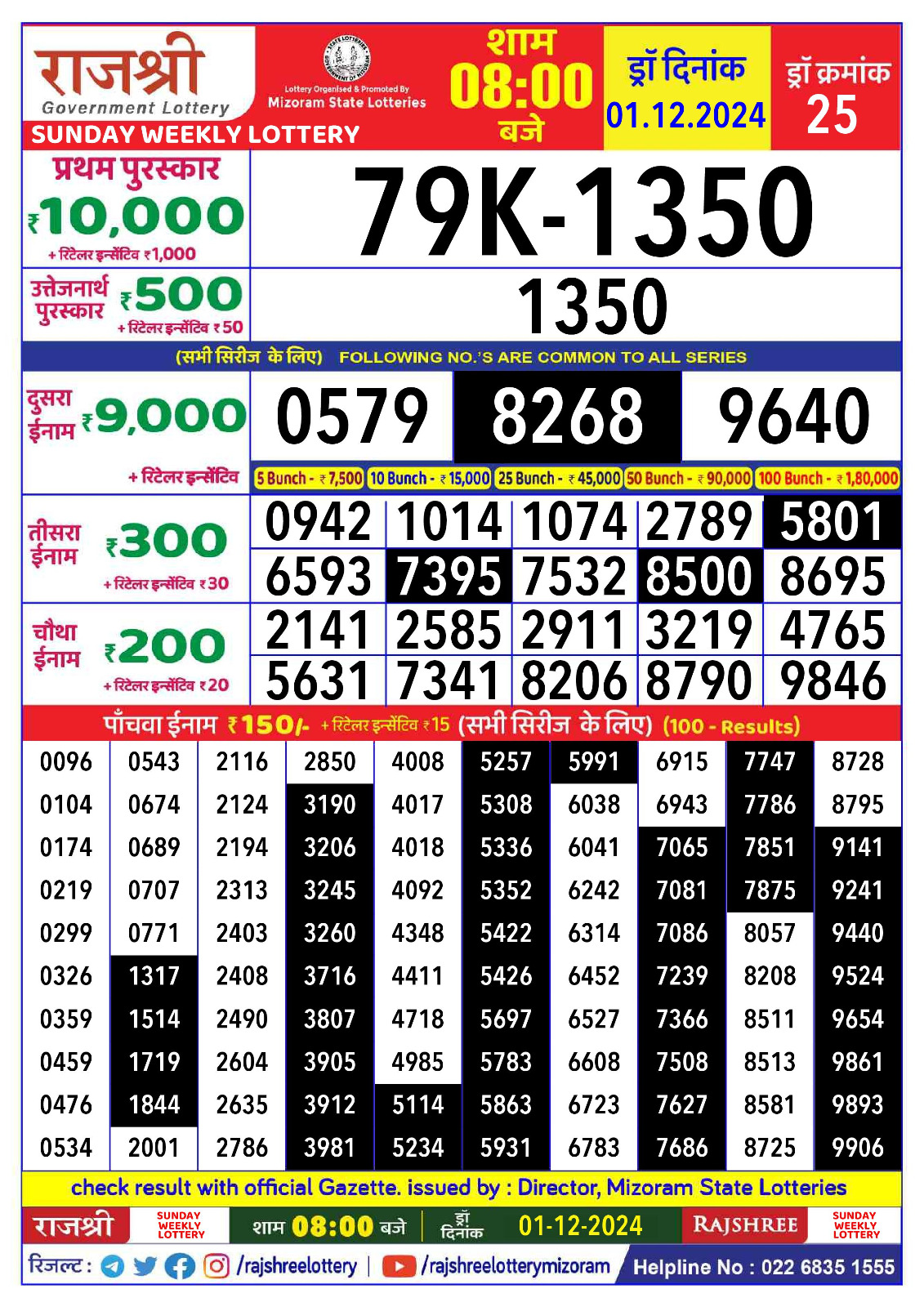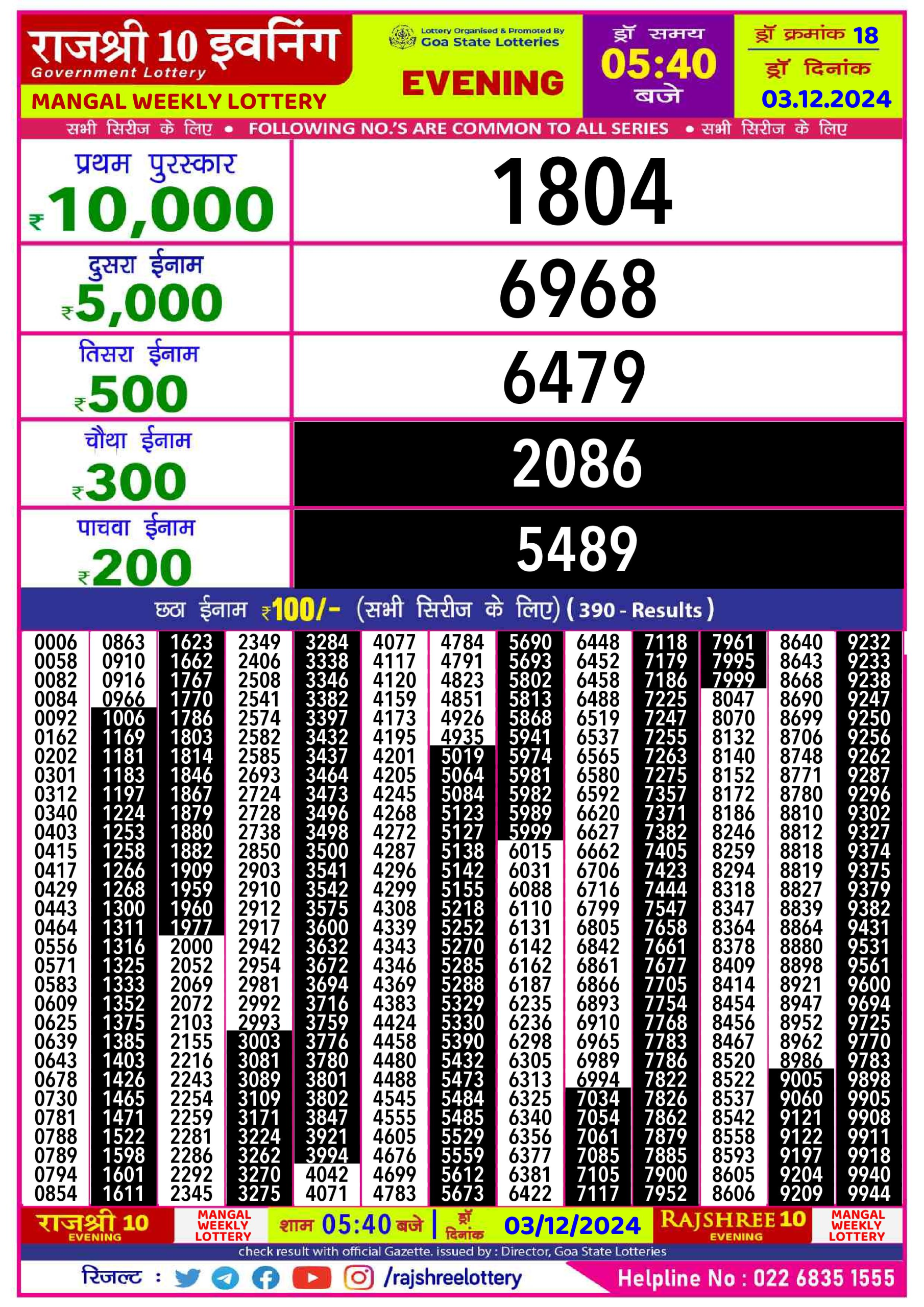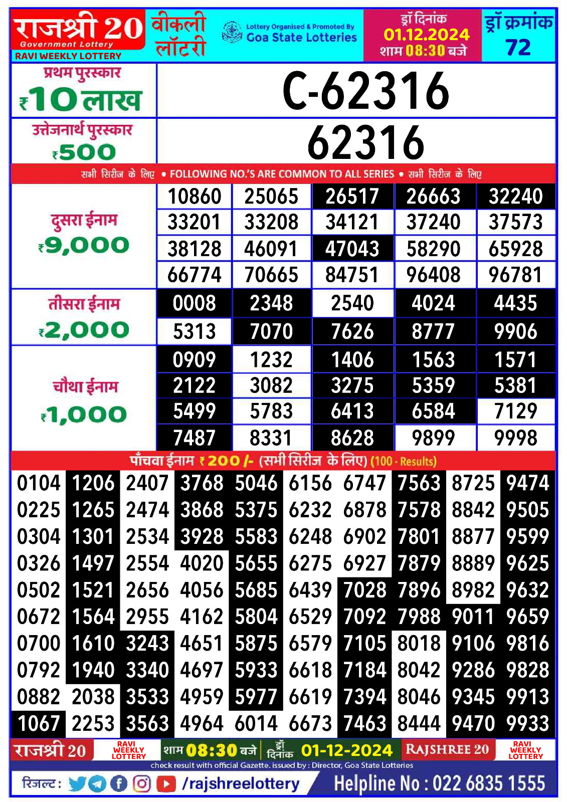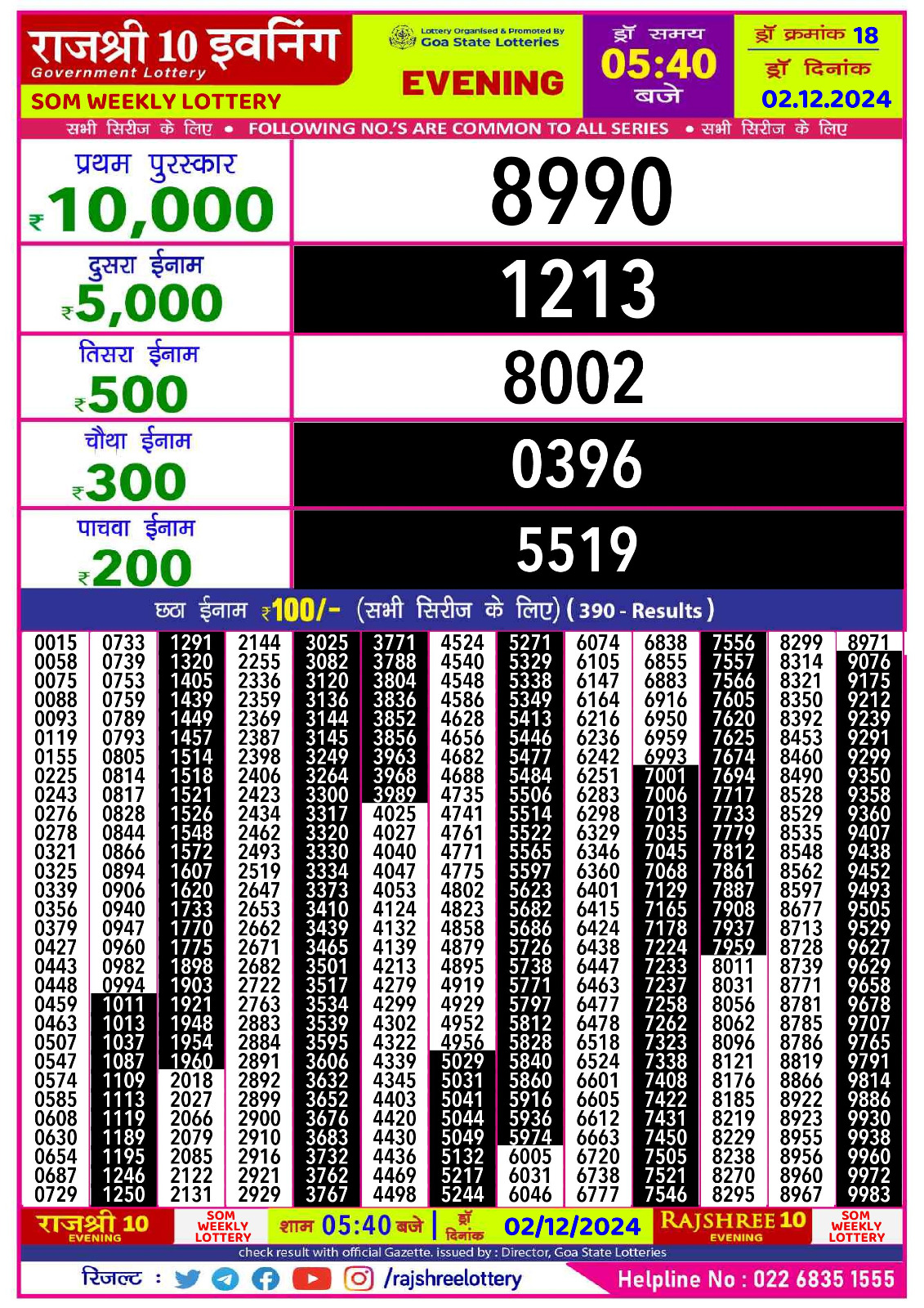 Rajshree 10 evening tuesday 5:40pm result 01.07.2025