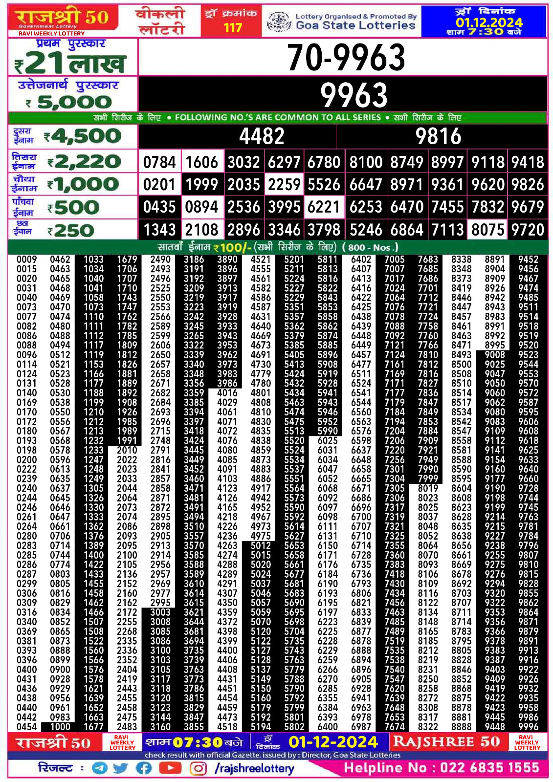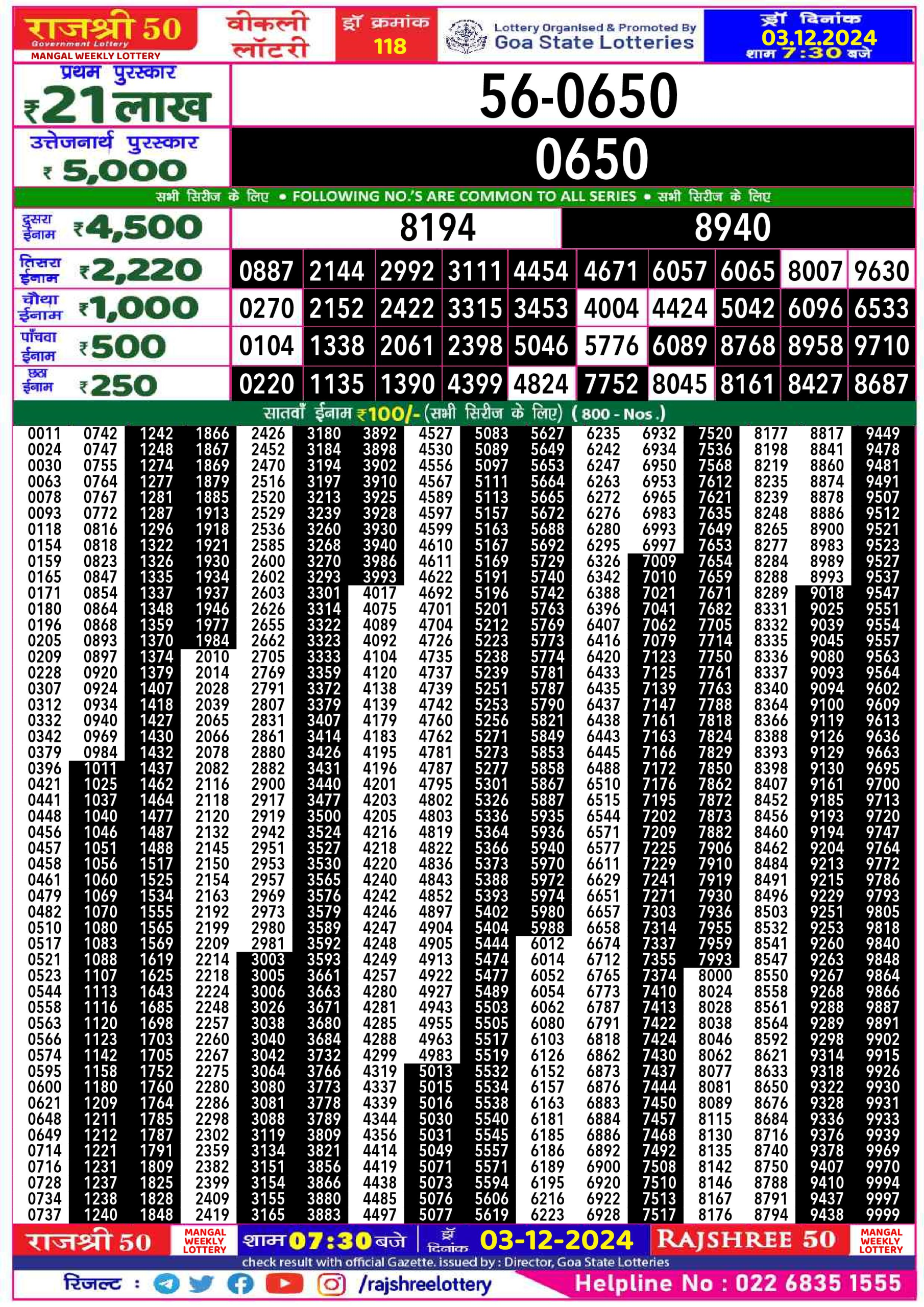 Rajshree 50 Lottery 7:30PM Result 01.07.2025