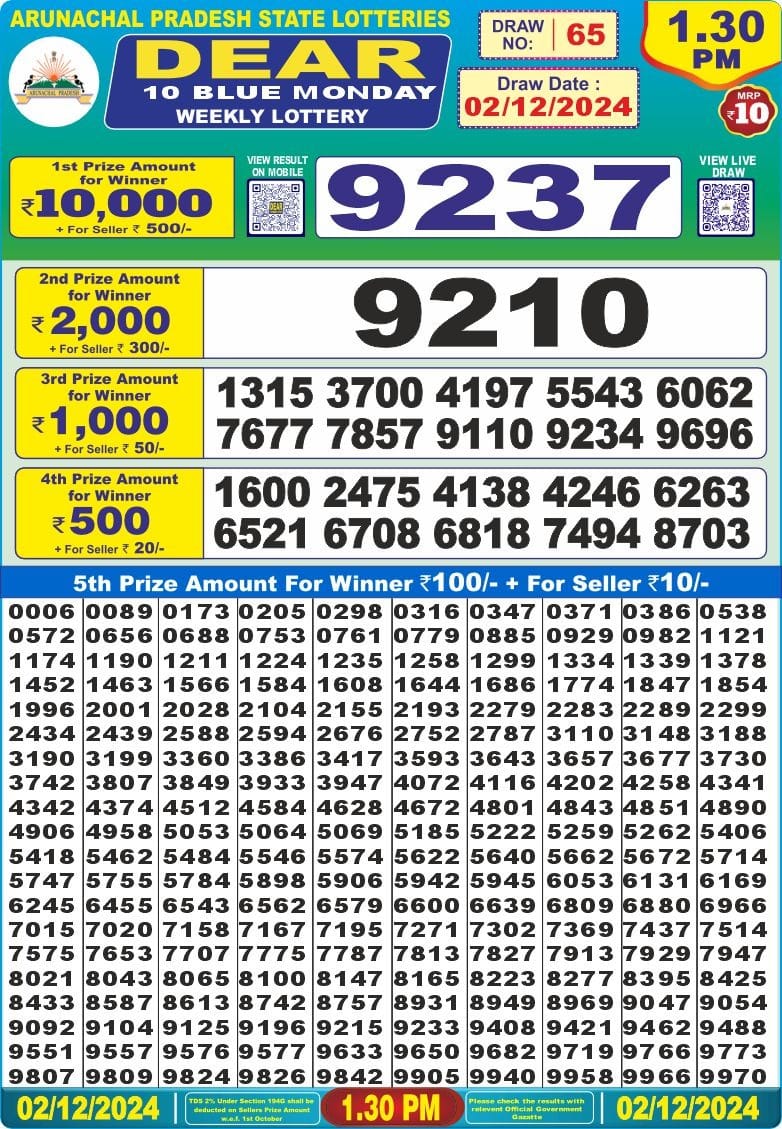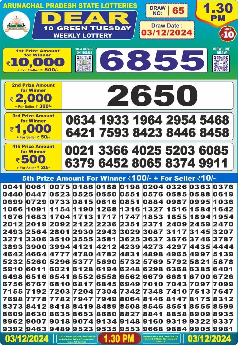 Dear 10 green lottery 1.30PM Result 01.07.2025