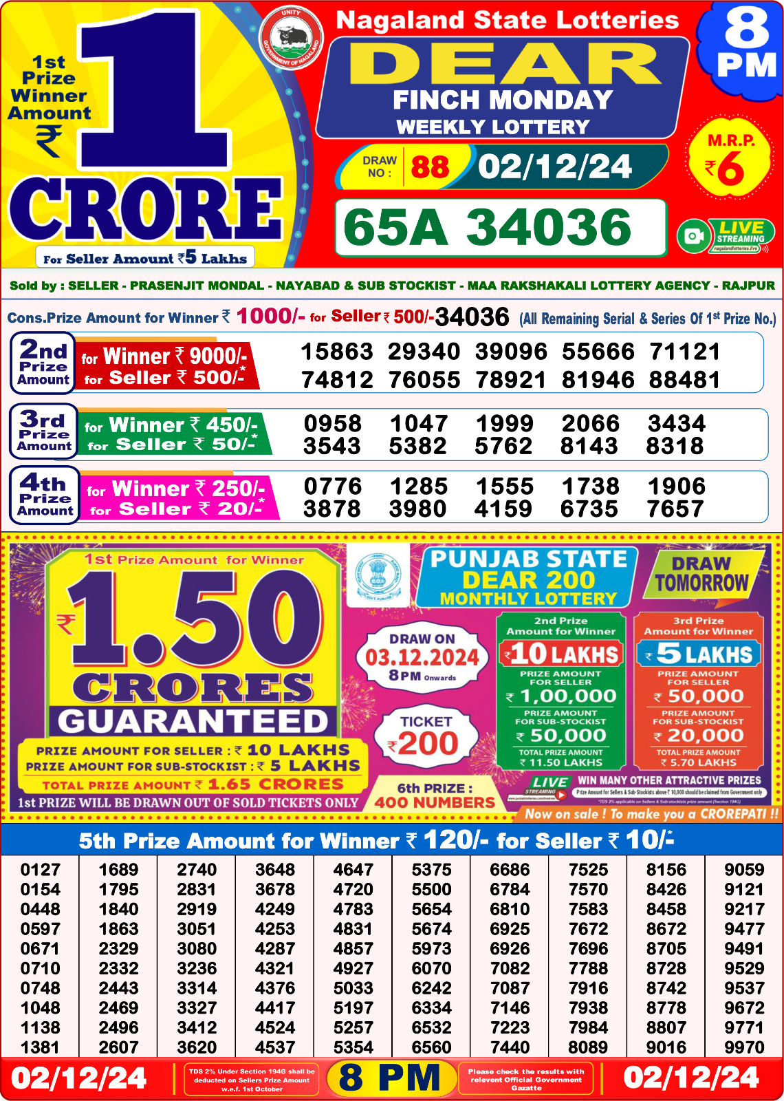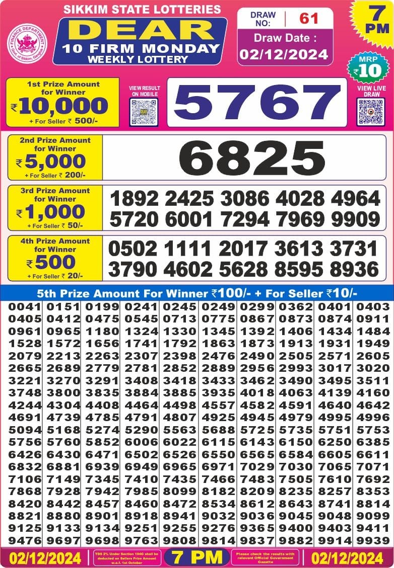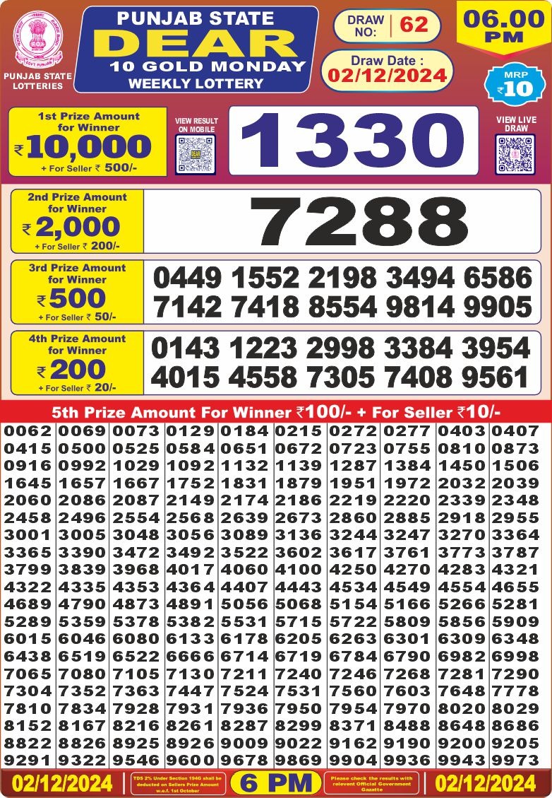 Punjab state dear 10 6pm lottery result 02.07.2025