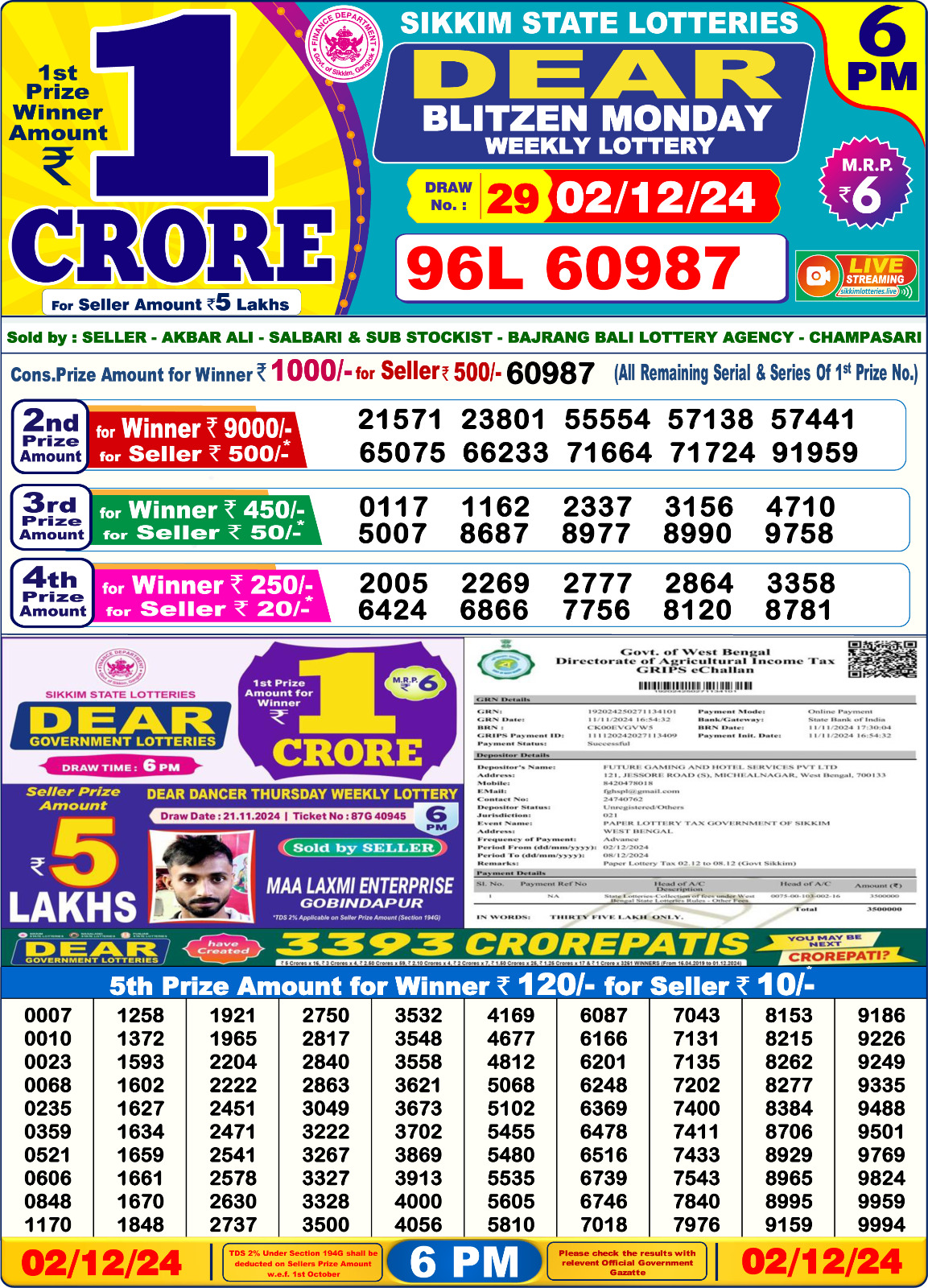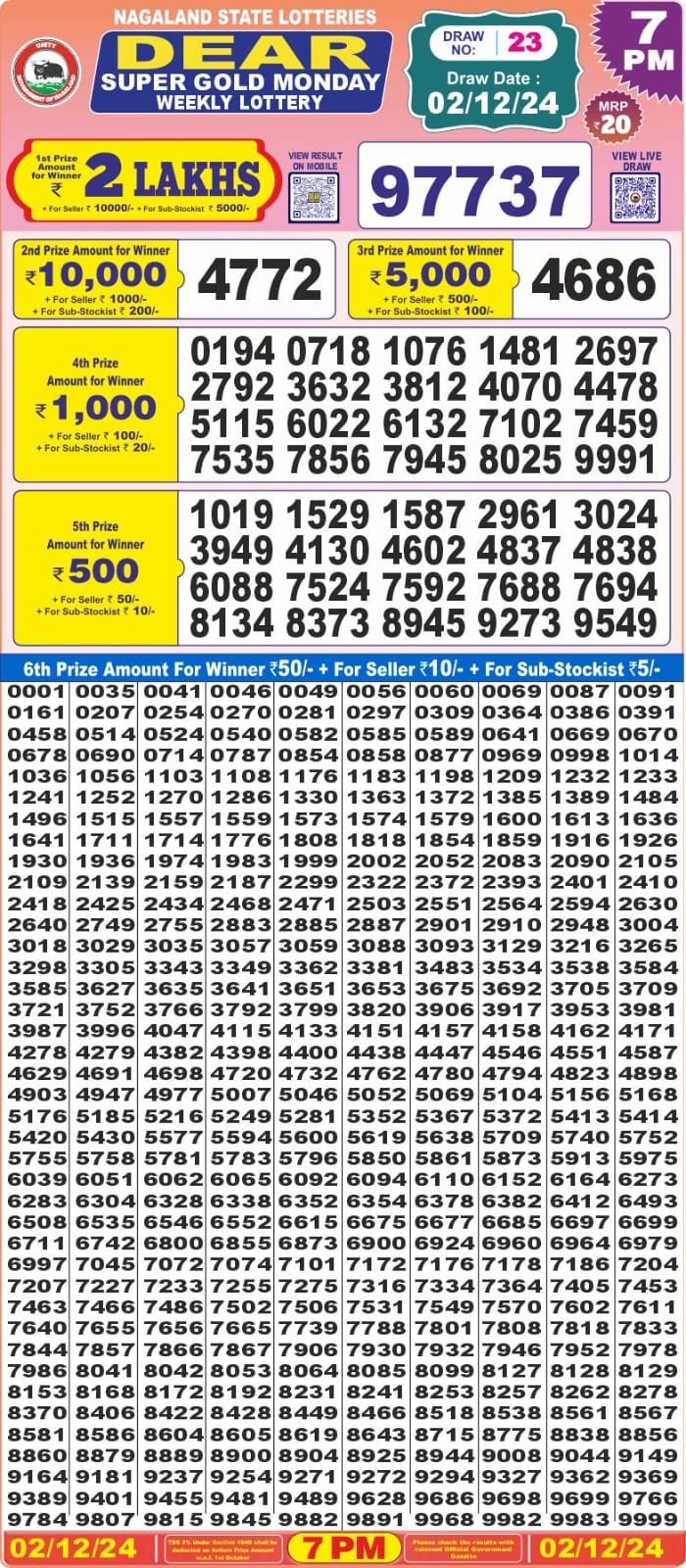 Dear Super Peral Lottery 7pm result 02.07.2025