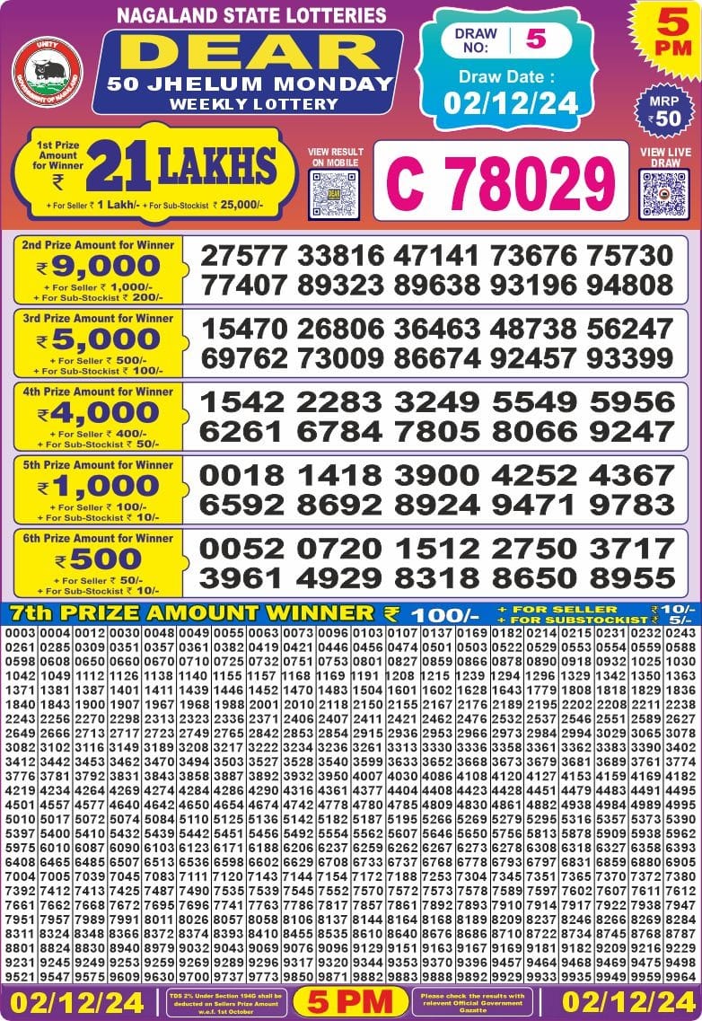 Dear 50 Chenab 5pm Wednesday Lottery Result 02.07.2025
