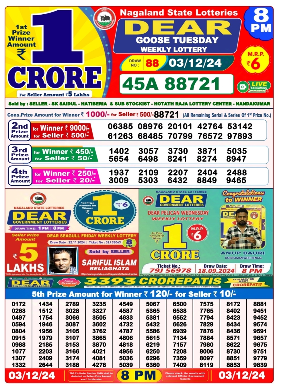 Dear goose Weekly Lottery 8PM Result 01.07.2025