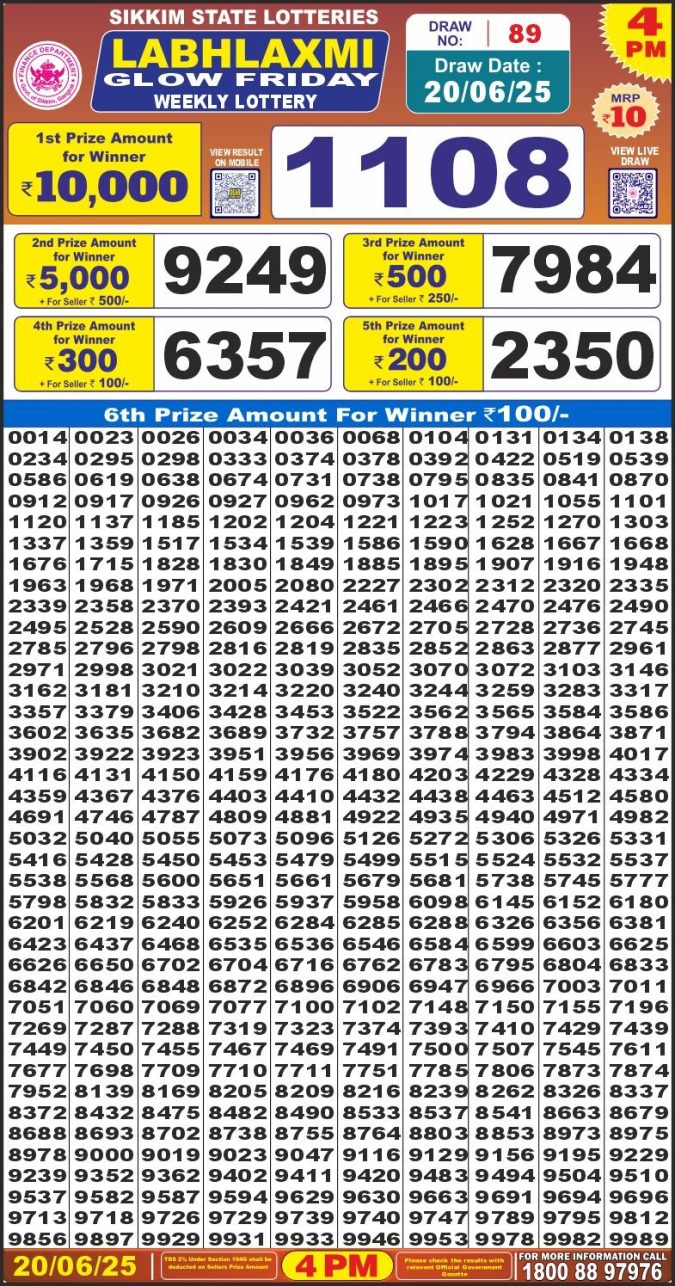 LabhLaxmi glow weekly 4PM Result 20.06.2025