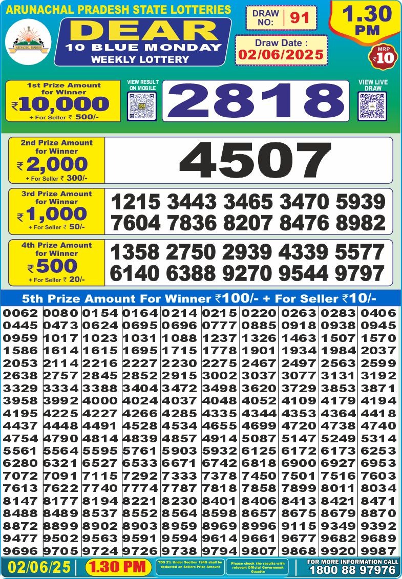 Dear 10 Blue lottery 1.30PM Result 02.06.25