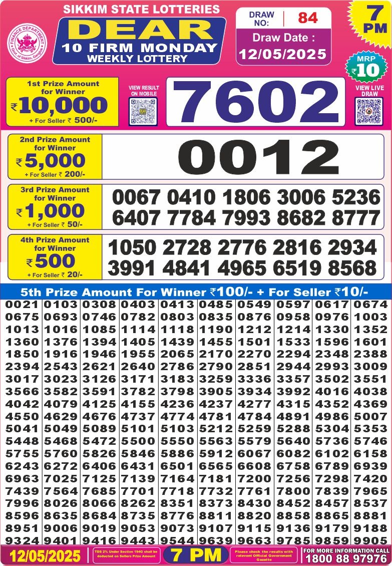 Nagaland State Lotteries was established in the year 1972 under the supervision of the Finance Department to generate a dependable source of revenue for the State Government. Nagaland State Lottery is held every day of the week at three different times of the day, Morning, Day, and Evening. Every day, the lottery is held under a different name with some difference in the prize money with the top prize worth ₹1 Crore (including Super Prize amount). The daily lotteries hosted by Nagaland State include Dear Morning Lottery, Dear Day Lottery, and Dear Evening Lottery which costs 6 Rupees for each ticket.