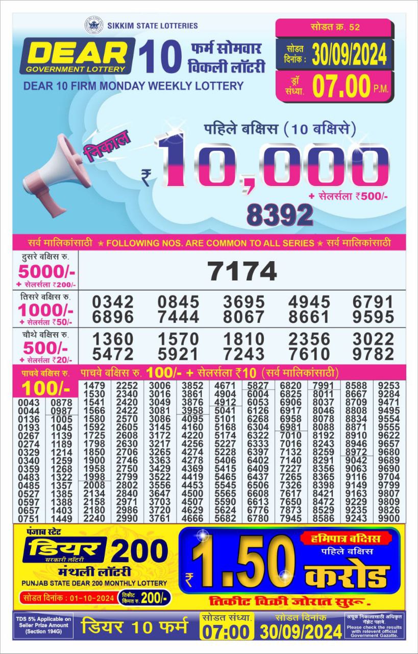 Nagaland State Lotteries was established in the year 1972 under the supervision of the Finance Department to generate a dependable source of revenue for the State Government. Nagaland State Lottery is held every day of the week at three different times of the day, Morning, Day, and Evening. Every day, the lottery is held under a different name with some difference in the prize money with the top prize worth ₹1 Crore (including Super Prize amount). The daily lotteries hosted by Nagaland State include Dear Morning Lottery, Dear Day Lottery, and Dear Evening Lottery which costs 6 Rupees for each ticket.