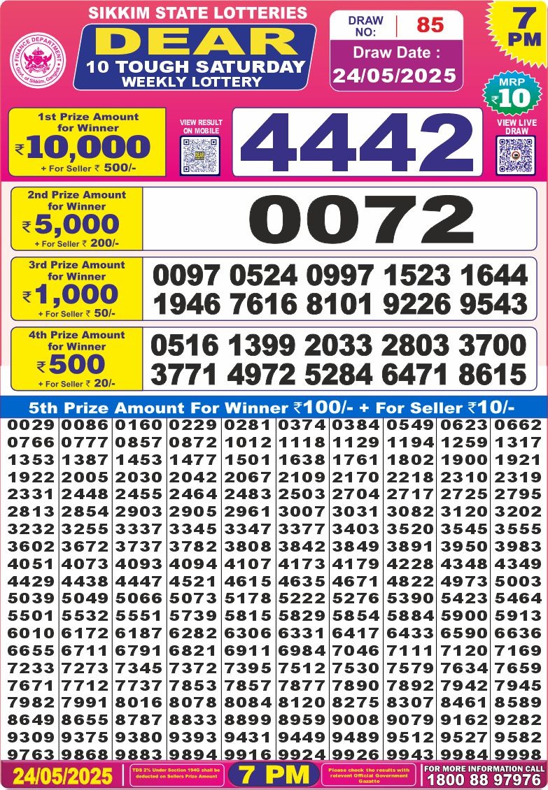 Dear 10 tough 7pm result 24.05.25
