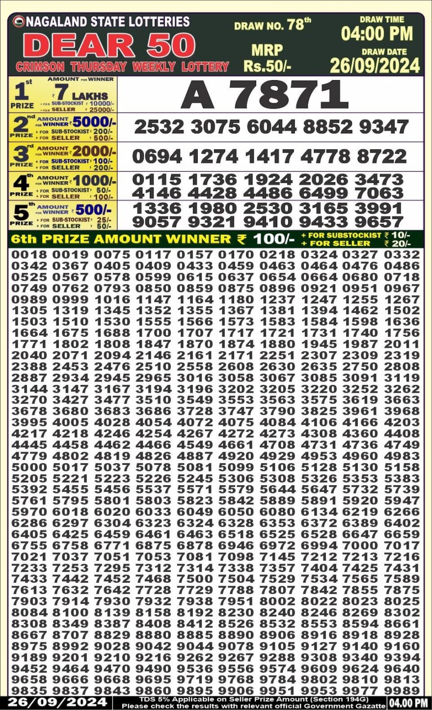 Dear 50 crimson thursday  Lottery 4pm Result  26.09.2024