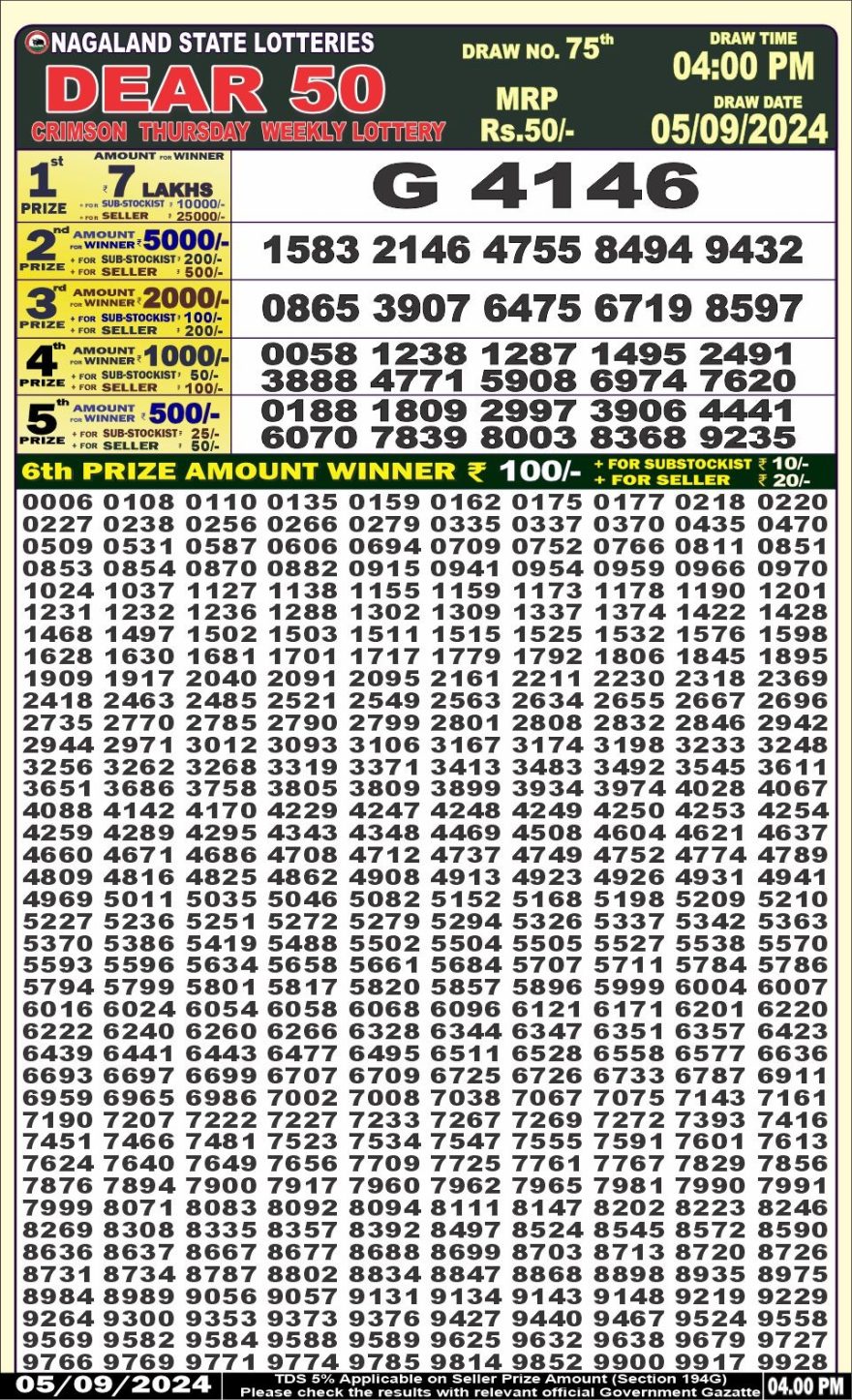 Dear 50 crimson thursday  Lottery 4pm Result  5.09.2024