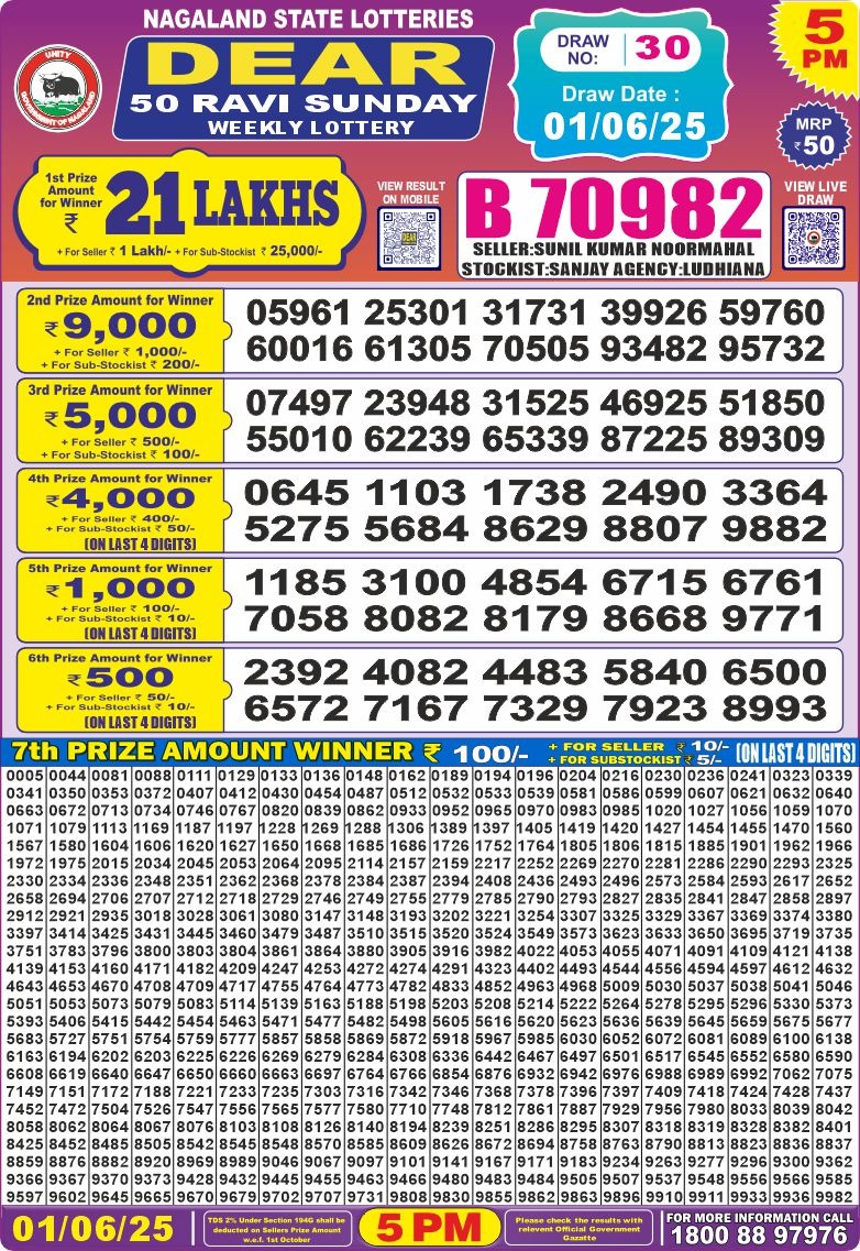 Dear 50 ravi saturday Lottery 5pm Result  01.06.25
