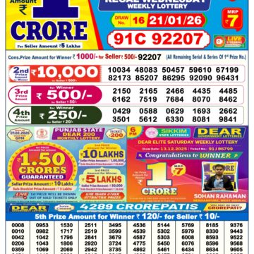 Nagaland State Lotteries was established in the year 1972 under the supervision of the Finance Department to generate a dependable source of revenue for the State Government. Nagaland State Lottery is held every day of the week at three different times of the day, Morning, Day, and Evening. Every day, the lottery is held under a different name with some difference in the prize money with the top prize worth ₹1 Crore (including Super Prize amount). The daily lotteries hosted by Nagaland State include Dear Morning Lottery, Dear Day Lottery, and Dear Evening Lottery which costs 6 Rupees for each ticket.