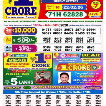 Nagaland State Lotteries was established in the year 1972 under the supervision of the Finance Department to generate a dependable source of revenue for the State Government. Nagaland State Lottery is held every day of the week at three different times of the day, Morning, Day, and Evening. Every day, the lottery is held under a different name with some difference in the prize money with the top prize worth ₹1 Crore (including Super Prize amount). The daily lotteries hosted by Nagaland State include Dear Morning Lottery, Dear Day Lottery, and Dear Evening Lottery which costs 7 Rupees for each ticket (6 Rupees Earlier)