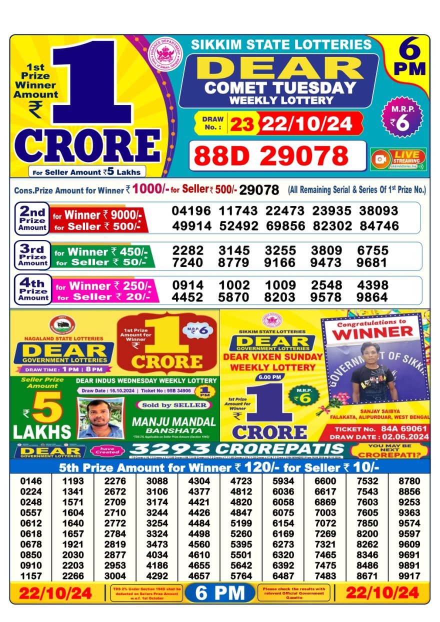 Dear comet tuesday  weekly  6PM Result 22.10.24
