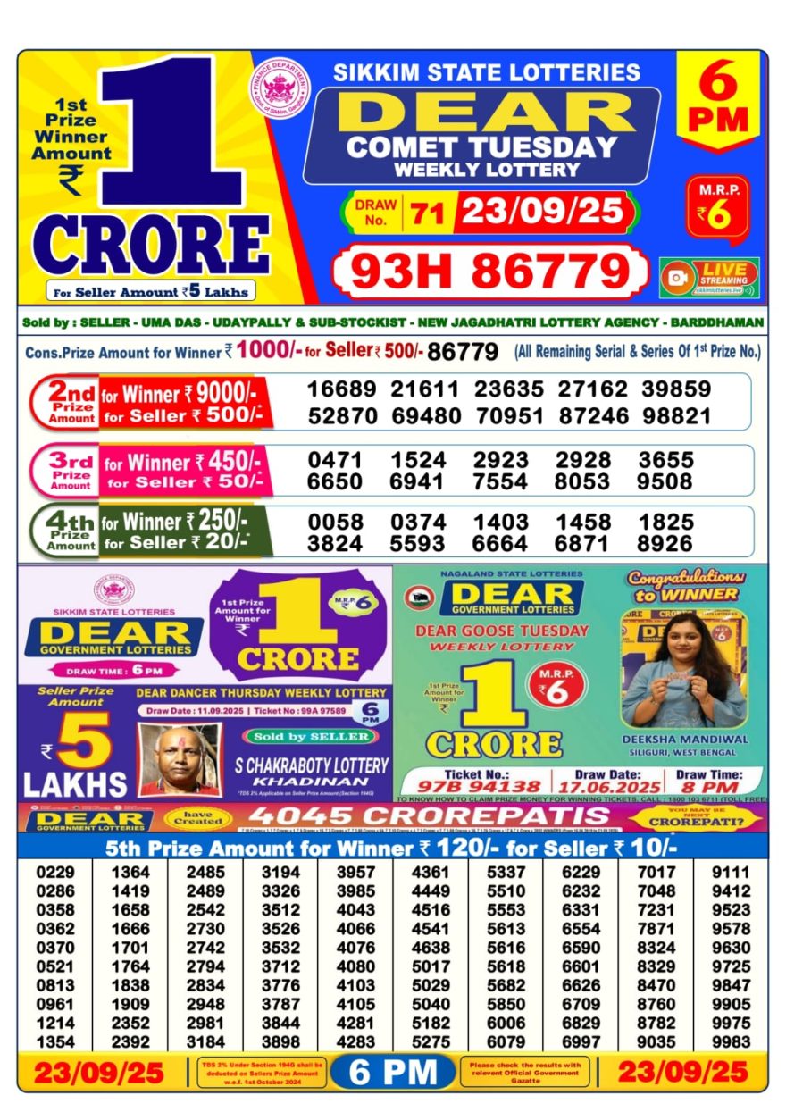 Dear Comet Tuesday Weekly 6pm Result 23.09.2025