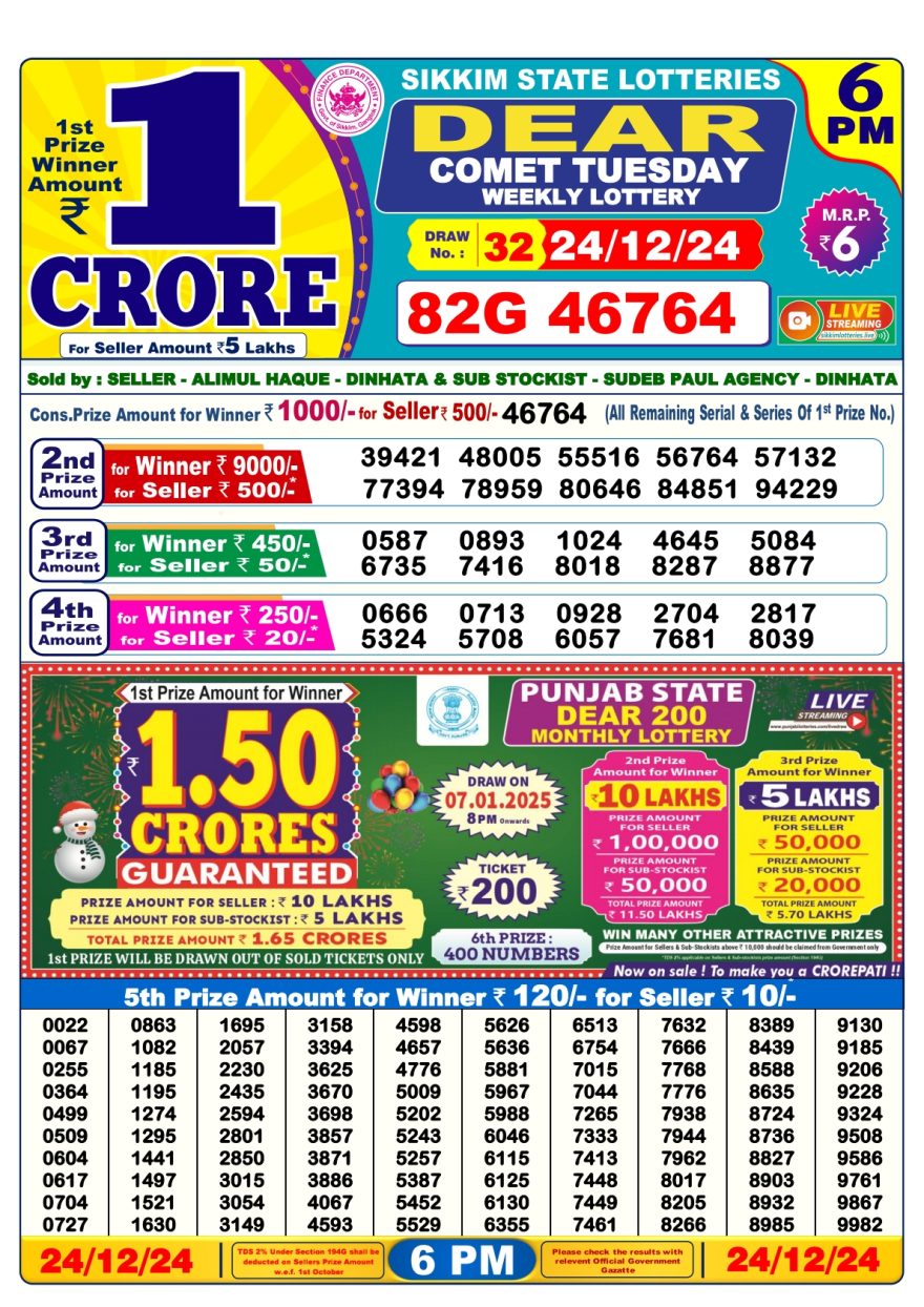 Dear comet tuesday weekly 6PM Result 24.12.24